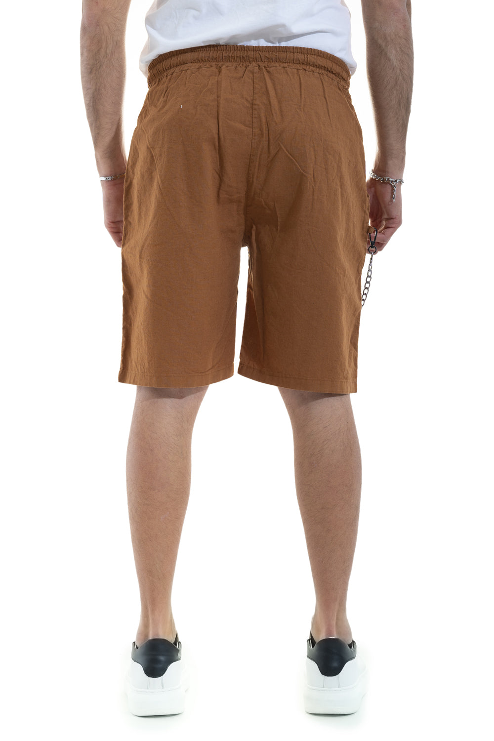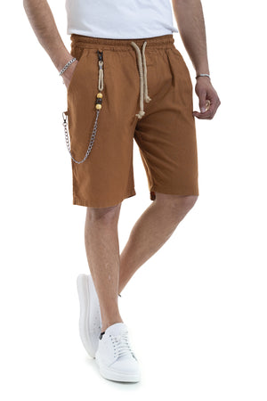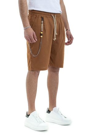 Bermuda Uomo In Lino Con Accessorio Tasca America Marrone Art. Bm34