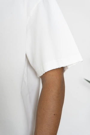 -Dettagli: T-shirt Boxy , Made in Italy, con maniche ampie e spalla scesa per un look rilassato. Dettagli di rotture sul collo e sulle maniche aggiungono un tocco grintoso e contemporaneo, perfetto per un outfit casual ma di carattere.