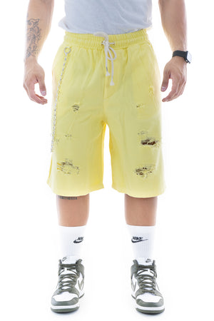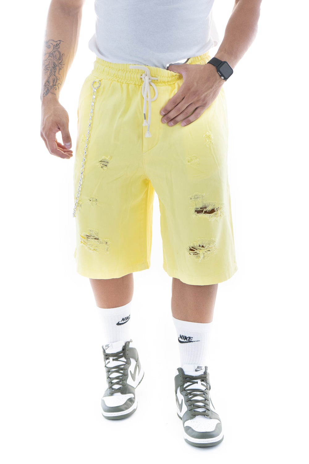 Bermuda Jeans Color Con Strappi E Catena Giallo Art. Bm60