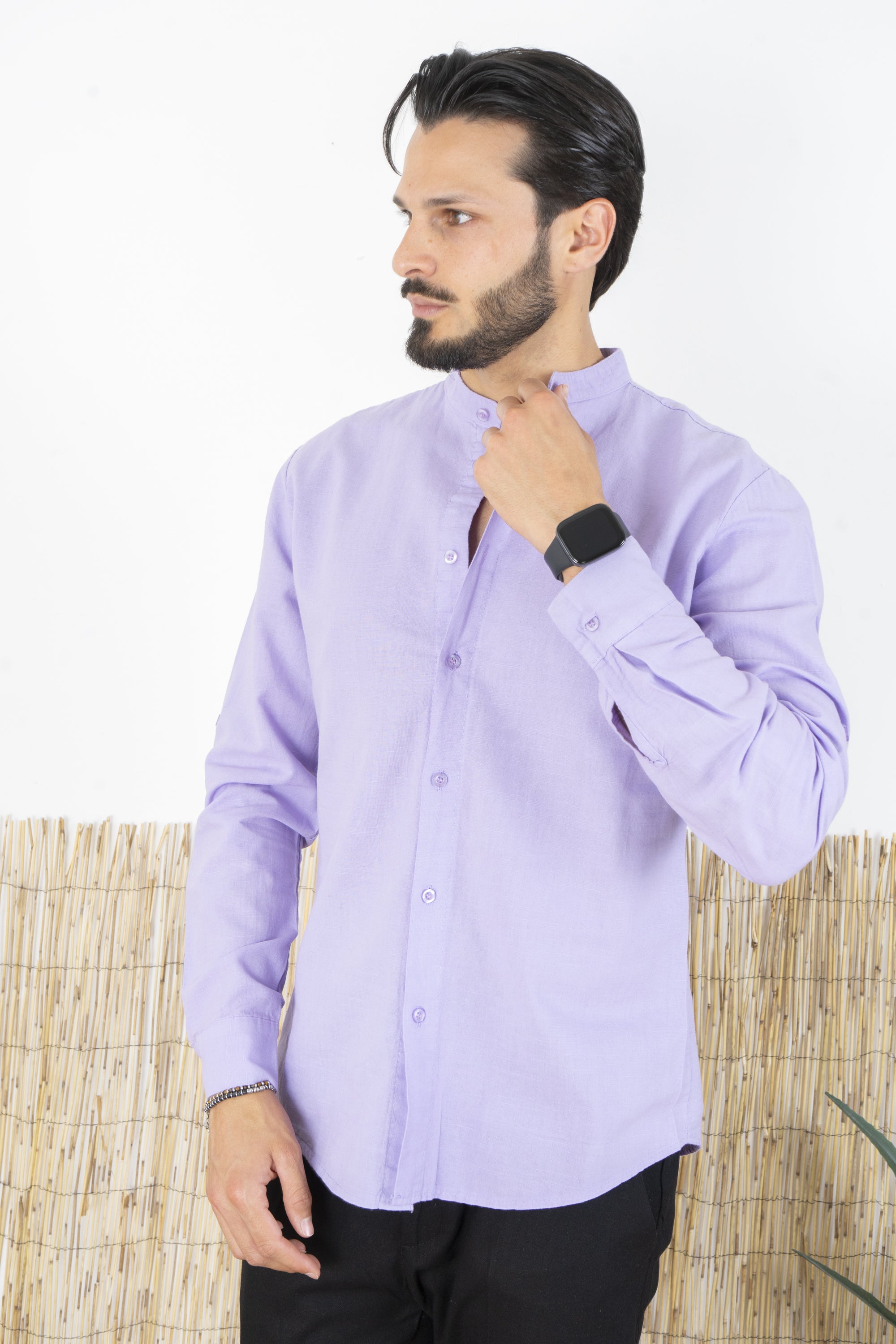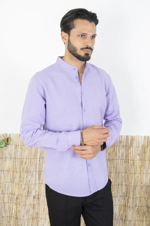 Camicia Uomo Lino Maniche Lunghe Tinta Unita Art. Cm87