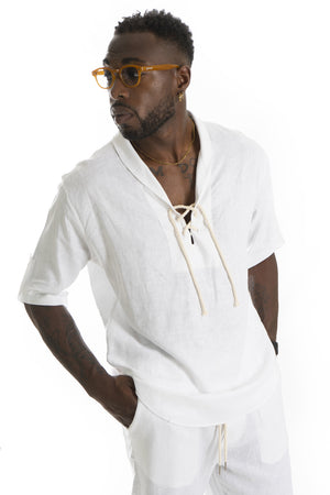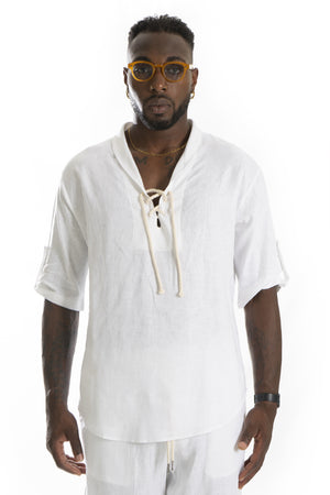 -Esplora la nostra camicia 100% lino con scollo a V e lacci regolabili. Con maniche corte e realizzata interamente in lino qualità, questa camicia offre freschezza e comfort ideali per le giornate estive. Un design elegante e versatile che aggiunge un tocco di raffinatezza al tuo guardaroba.