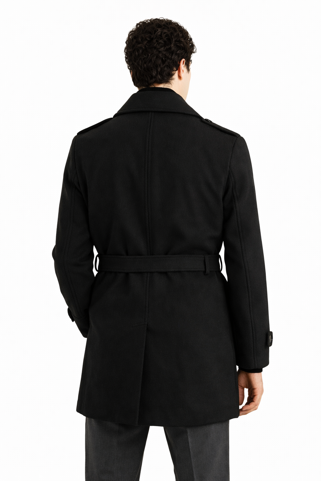 Questo cappotto uomo doppiopetto con cintura è il capo ideale per chi cerca uno stile elegante ma contemporaneo.
