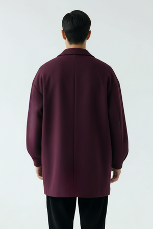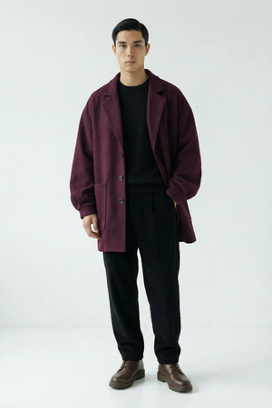 Cappotto uomo dal taglio oversize con texture morbida e calda.