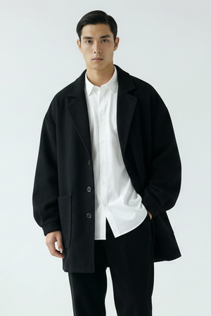 Cappotto uomo dal taglio oversize con texture morbida e calda.