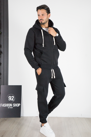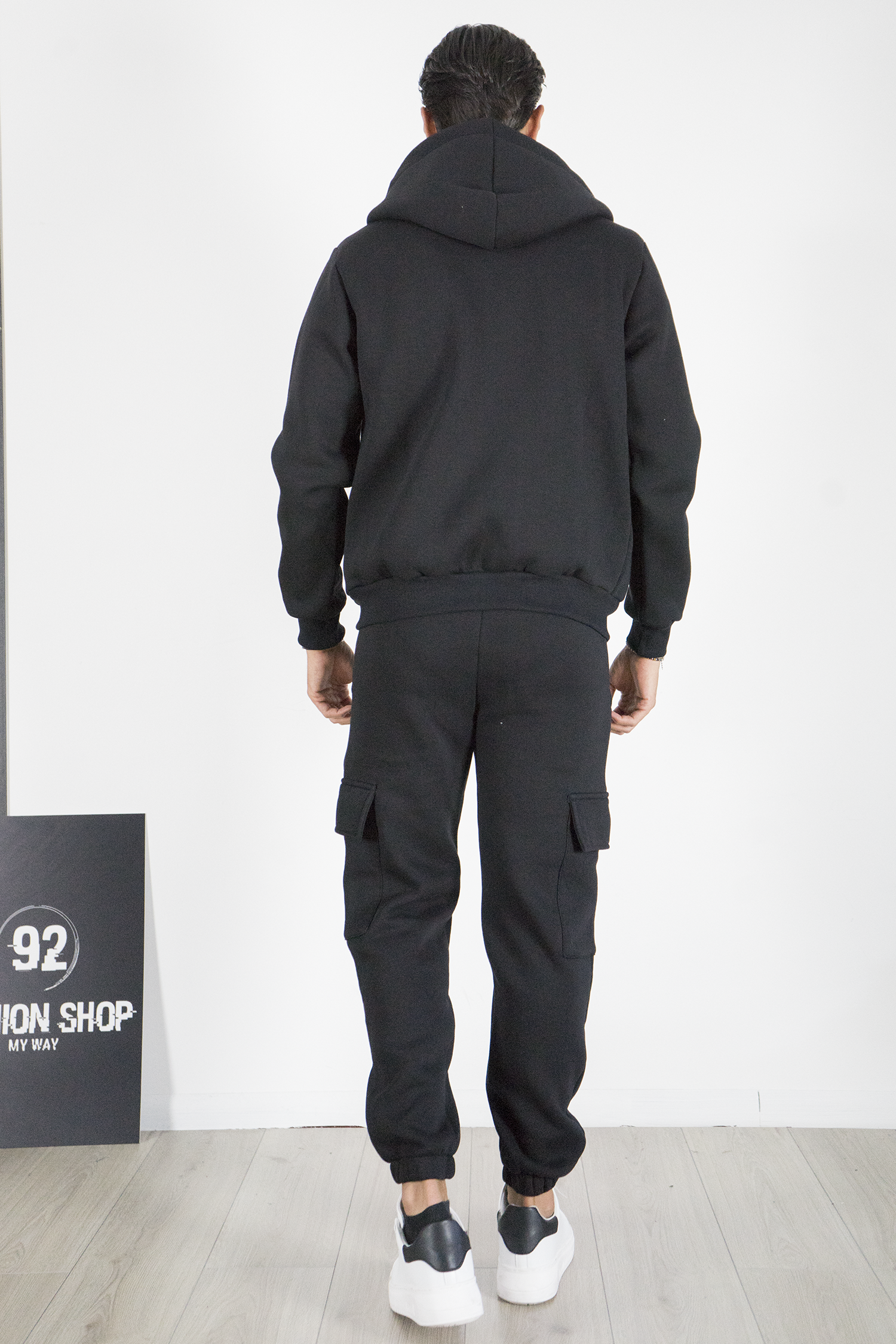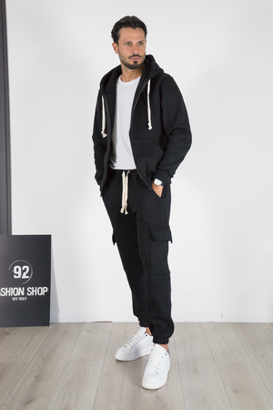 -Completo tuta uomo composto da felpa con cappuccio e zip frontale e pantalone cargo jogger.