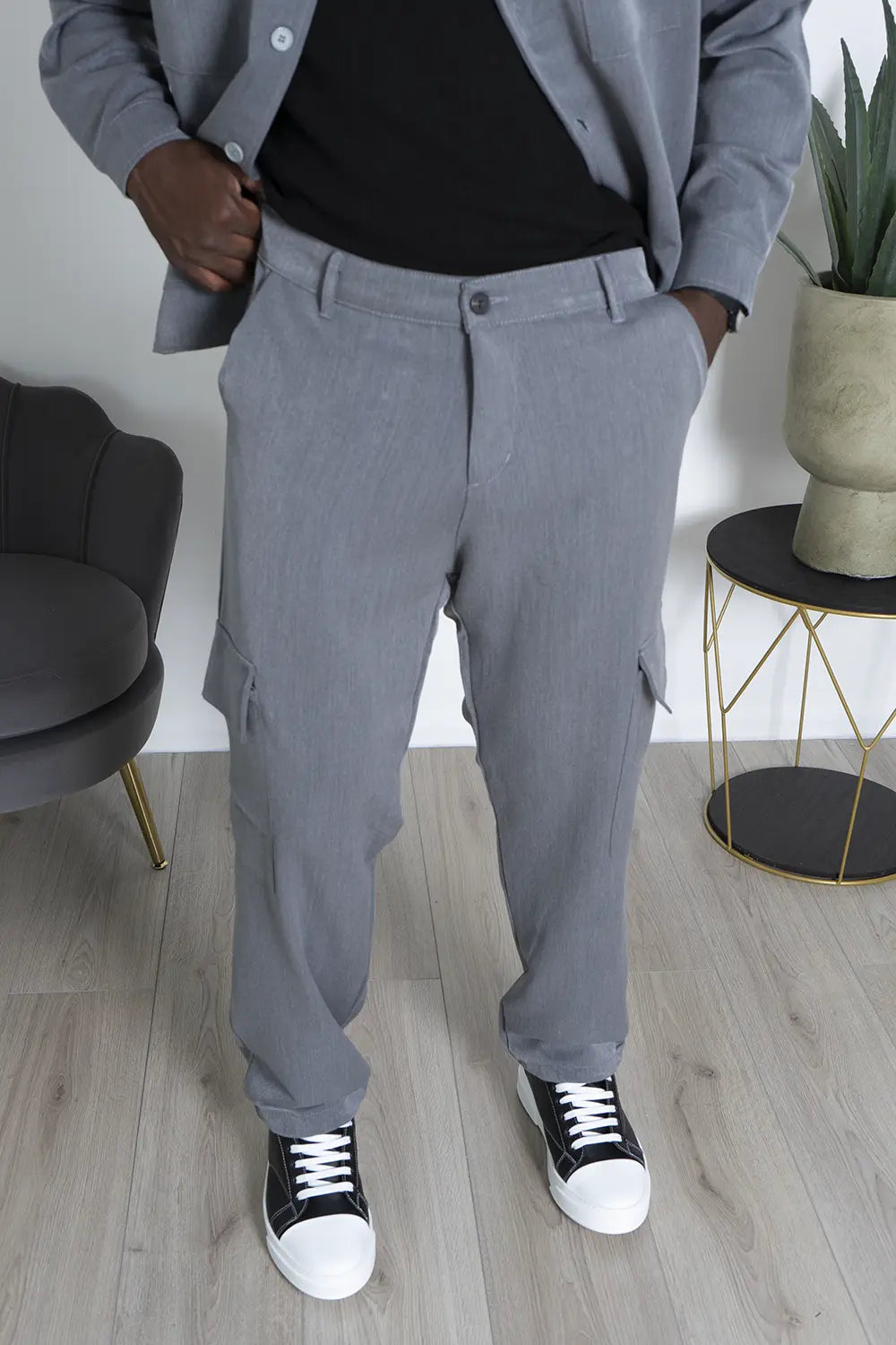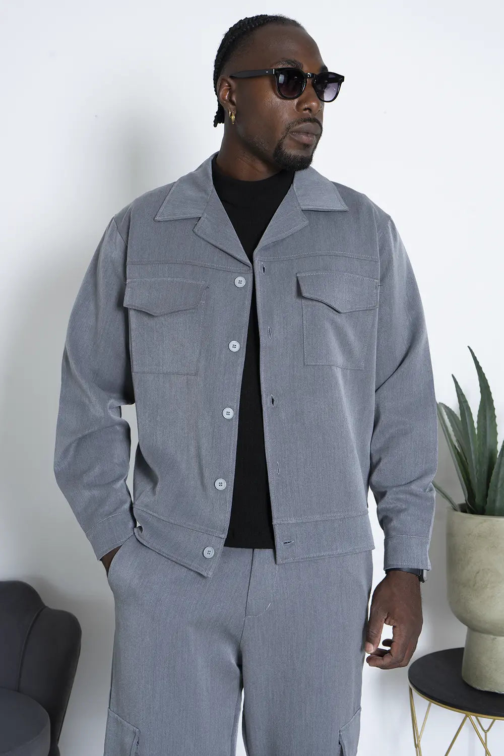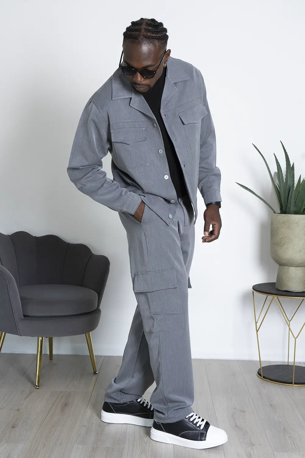 -Dettagli: Coordinato dal design moderno, prodotto in Italia, composto da una camicia con doppia tasca e chiusura con bottoni a contrasto, abbinata a un pantalone cargo con ampi tasconi laterali. Il pantalone, largo alla caviglia, è dotato di una caviglia regolabile per un fit personalizzabile. Un mix di stile e funzionalità, ideale per chi cerca un look versatile e di tendenza, con la qualità e la cura artigianale italiana.