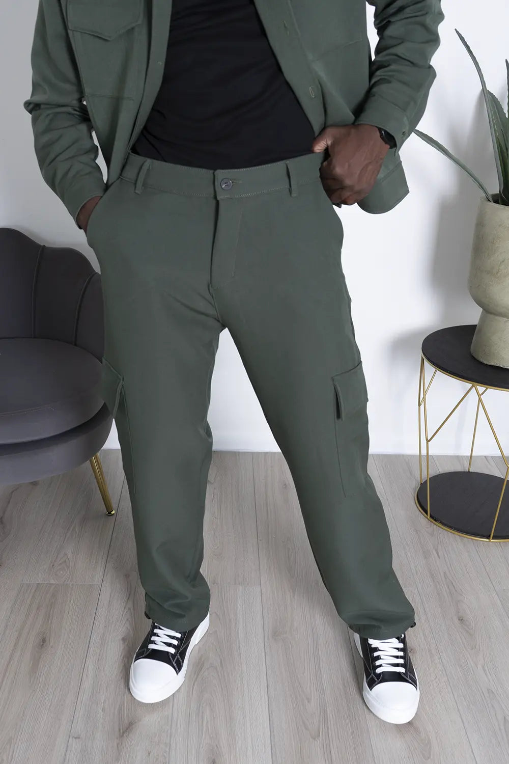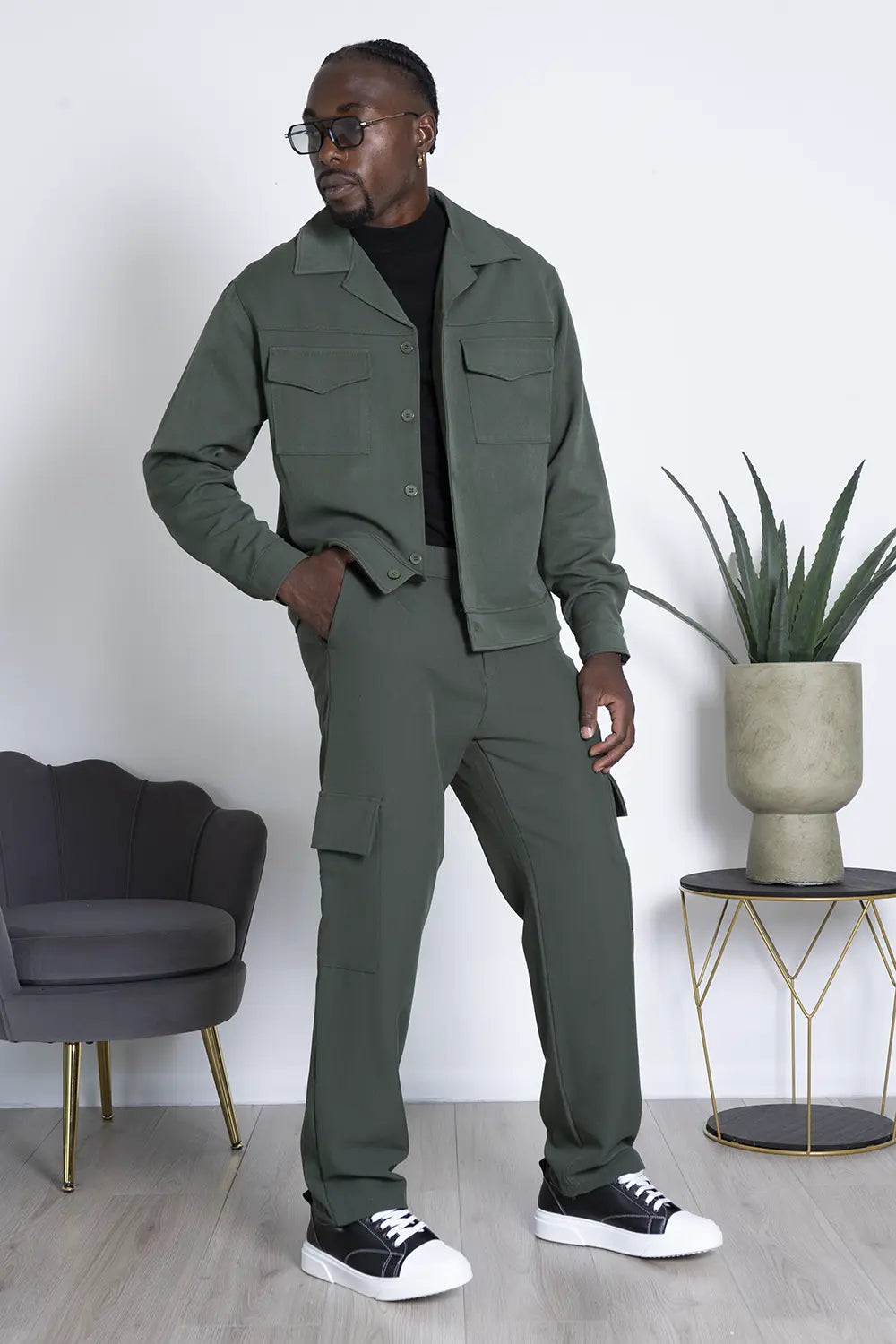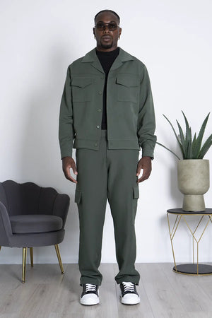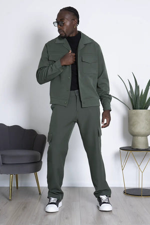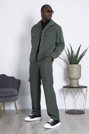 -Dettagli: Coordinato dal design moderno, prodotto in Italia, composto da una camicia con doppia tasca e chiusura con bottoni a contrasto, abbinata a un pantalone cargo con ampi tasconi laterali. Il pantalone, largo alla caviglia, è dotato di una caviglia regolabile per un fit personalizzabile. Un mix di stile e funzionalità, ideale per chi cerca un look versatile e di tendenza, con la qualità e la cura artigianale italiana.