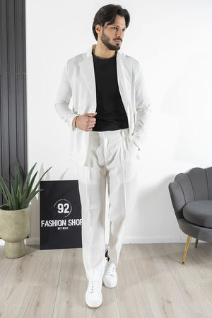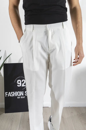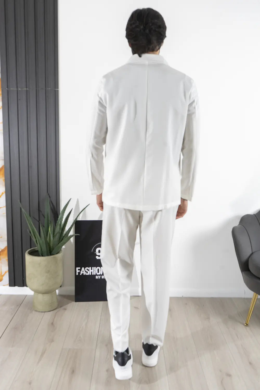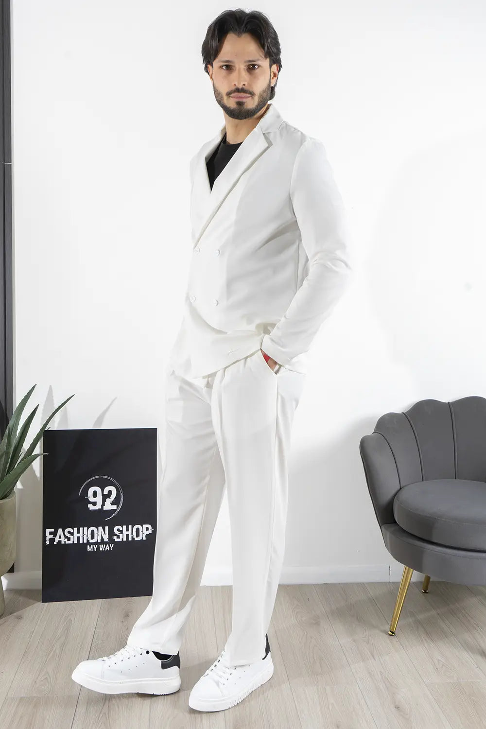 -Dettagli: Camicia Doppio Petto, Pantalone con bottone e zip centrale, Retro elastico, fondo largo.