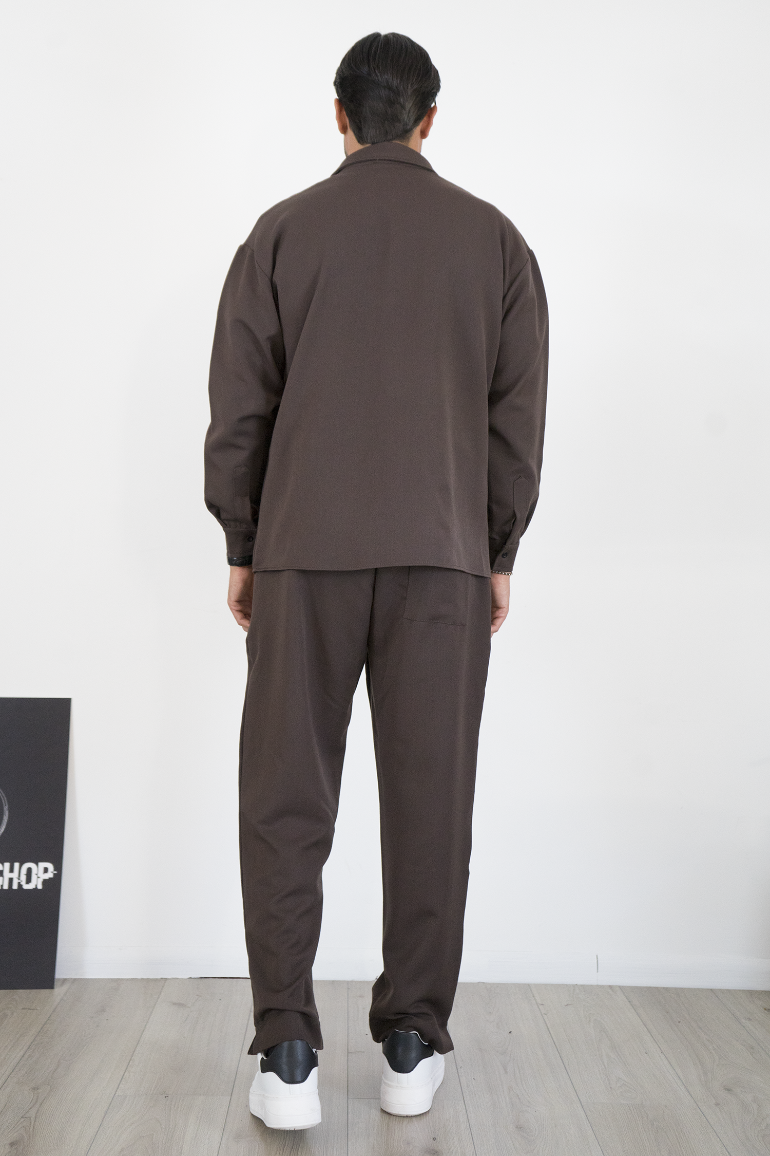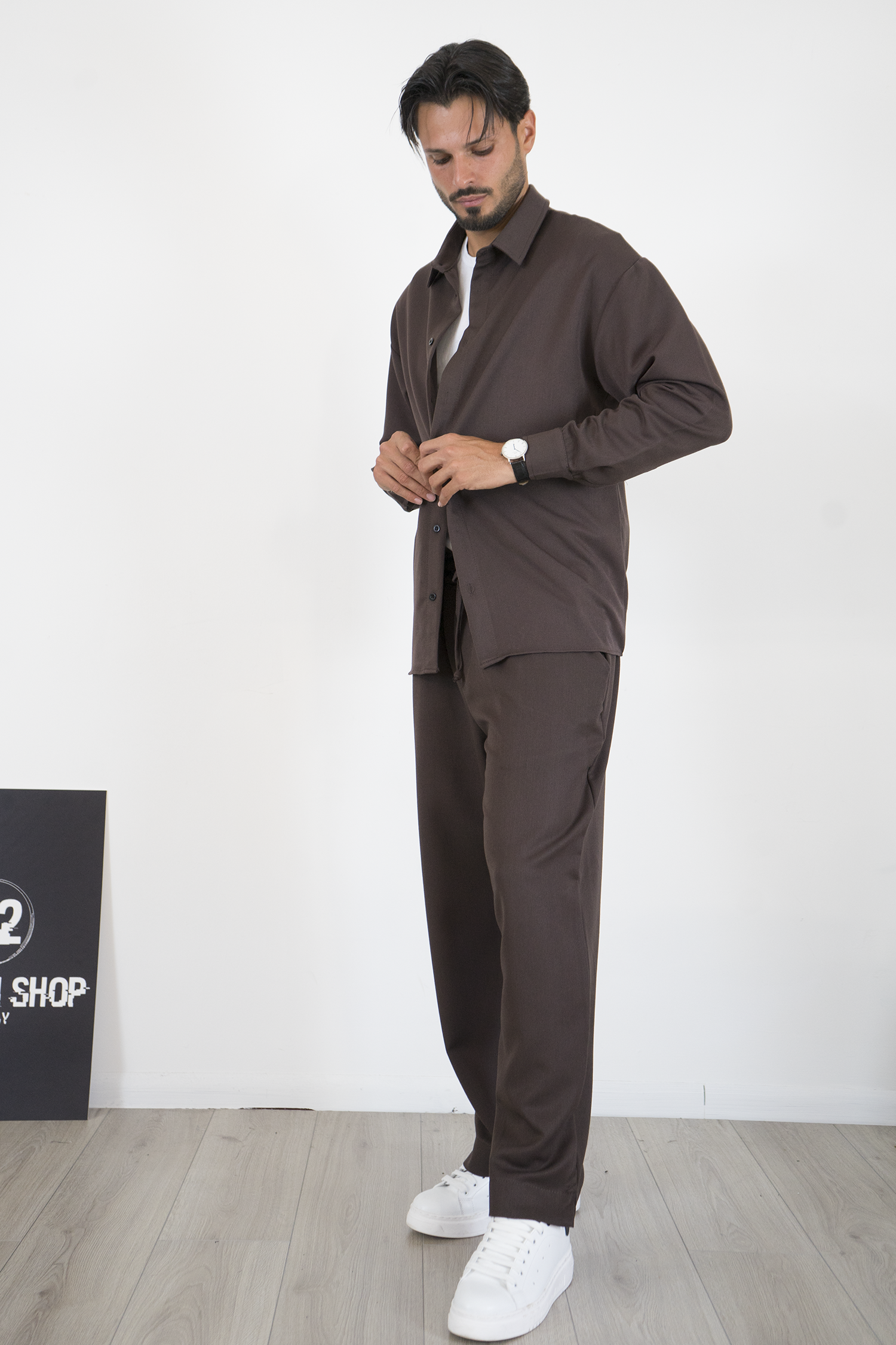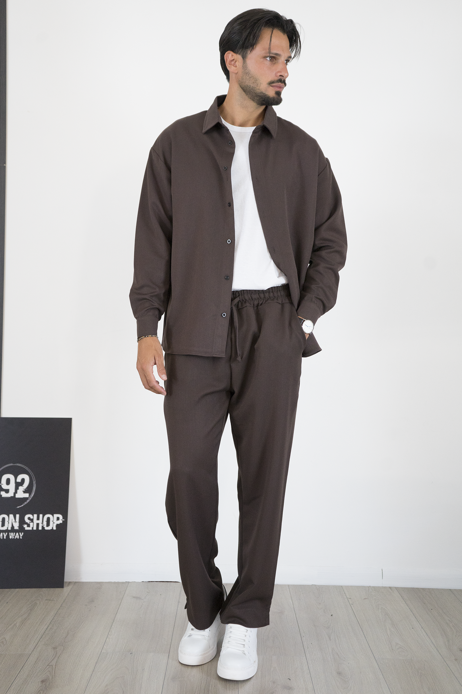 -Coordinato uomo composto da overshirt con chiusura a bottoni e pantalone con vestibilità comoda. Perfetto per look casual chic e semi-eleganti. L’overshirt può essere indossata aperta con una t-shirt o chiusa come camicia, mentre il pantalone a gamba dritta dona comfort e stile. Un completo versatile, ideale per outfit curati senza rinunciare alla praticità.