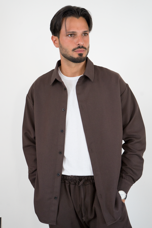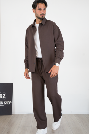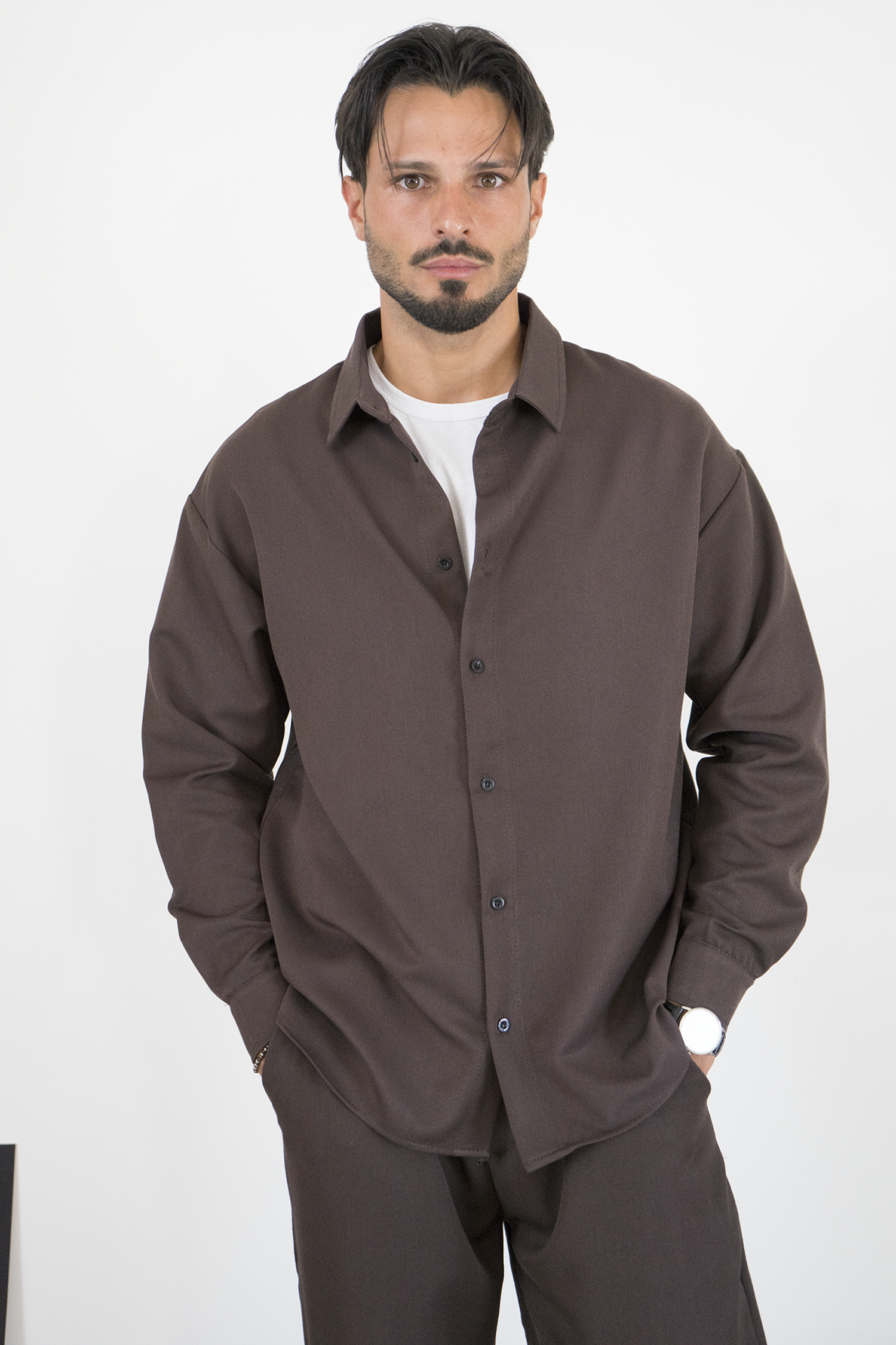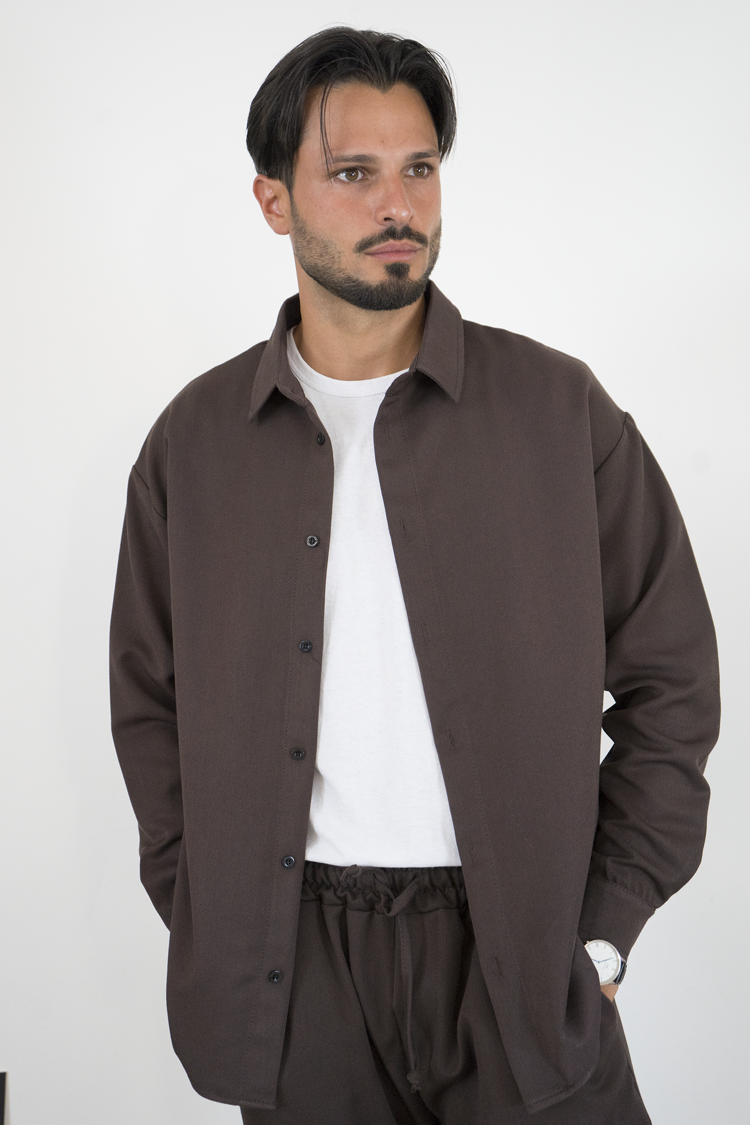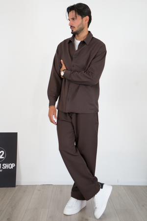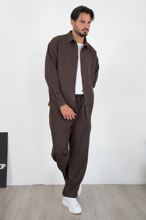 -Coordinato uomo composto da overshirt con chiusura a bottoni e pantalone con vestibilità comoda. Perfetto per look casual chic e semi-eleganti. L’overshirt può essere indossata aperta con una t-shirt o chiusa come camicia, mentre il pantalone a gamba dritta dona comfort e stile. Un completo versatile, ideale per outfit curati senza rinunciare alla praticità.