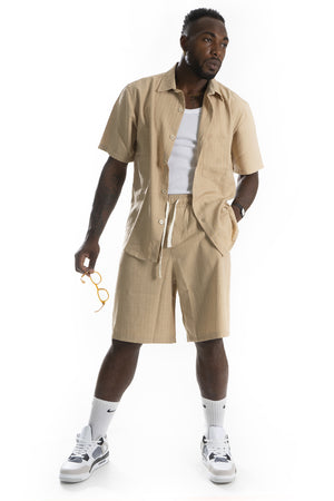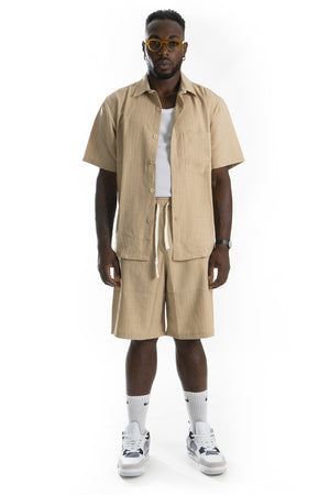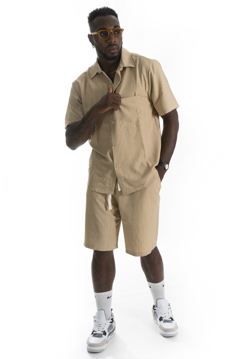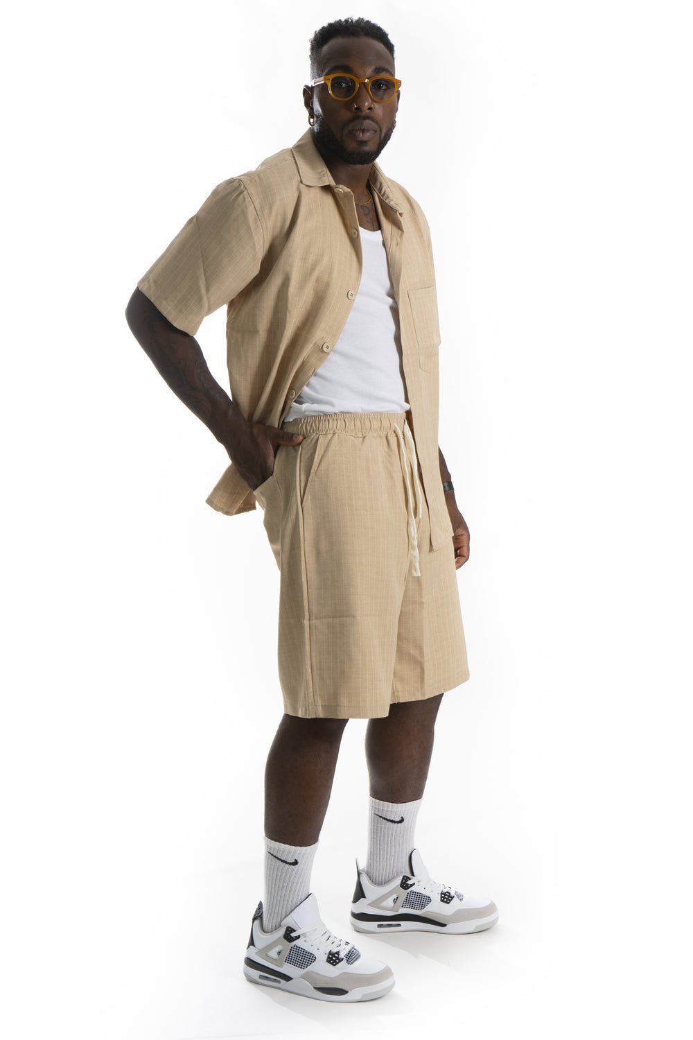 -Dettagli: camicia con taschino, bermuda con vita jogger e coulisse