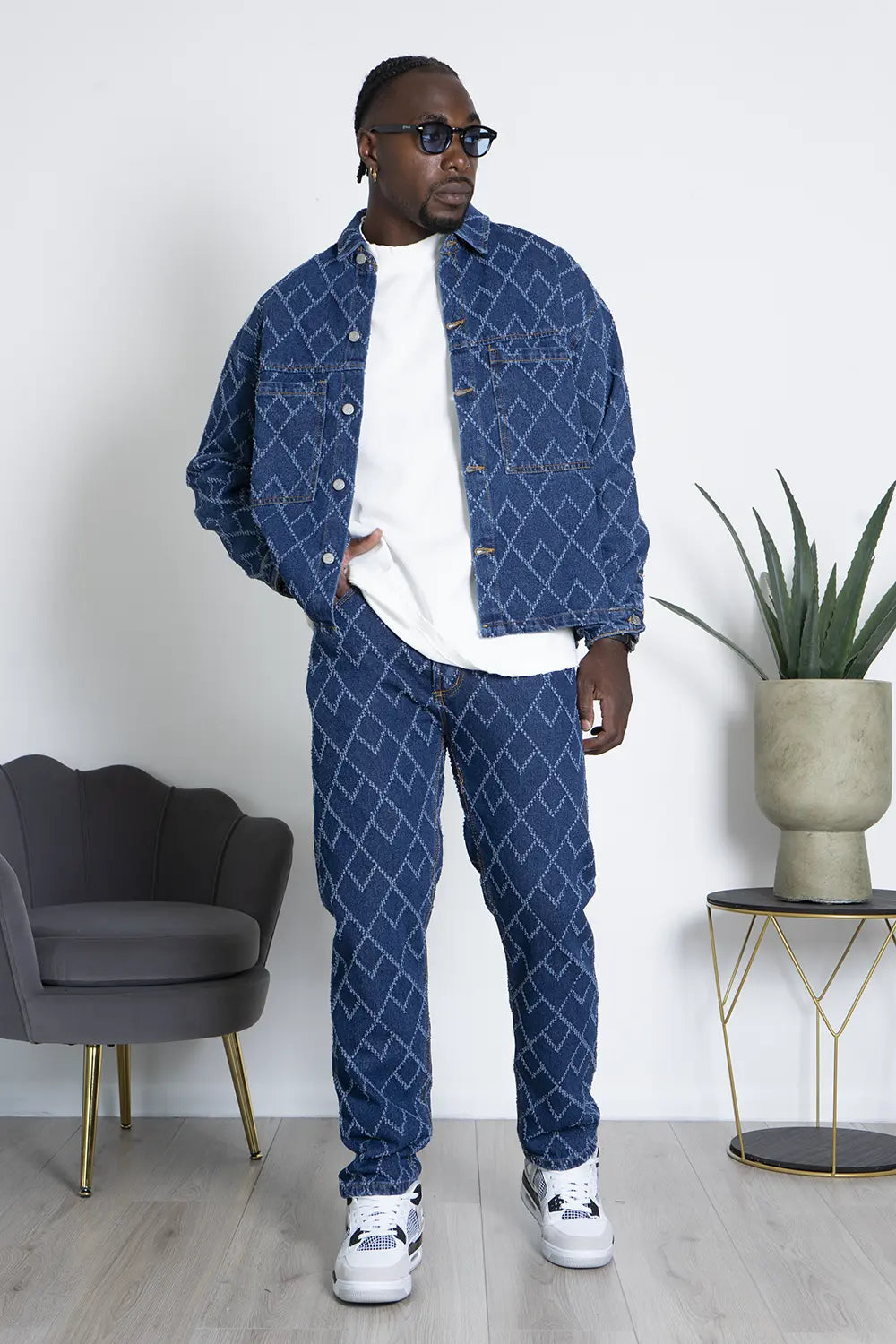 -Dettagli: Coordinato in jeans dallo stile audace e contemporaneo, composto da giacca con dettagli distintivi e pantalone ampio che scende largo. Entrambi i capi presentano abrasioni e sfrangiature che donano un look vissuto e di carattere. Perfetto per chi ama uno stile casual e moderno, questo set in jeans unisce comfort e tendenze con un tocco di originalità.