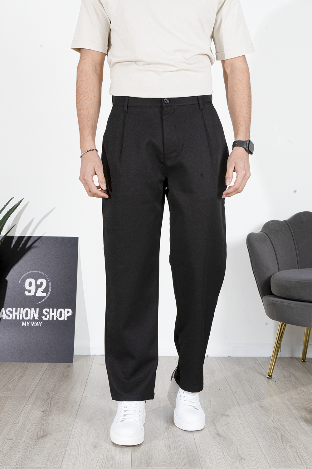 Il tessuto leggero garantisce una sensazione di freschezza e comfort durante tutto il giorno, mentre il colore sobrio e versatile lo rende facilmente abbinabile a diversi stili, da quello più casual a quello più elegante. Può essere indossato insieme per un look completo o separato con altri capi per aggiungere un tocco di classe a diversi outfit.