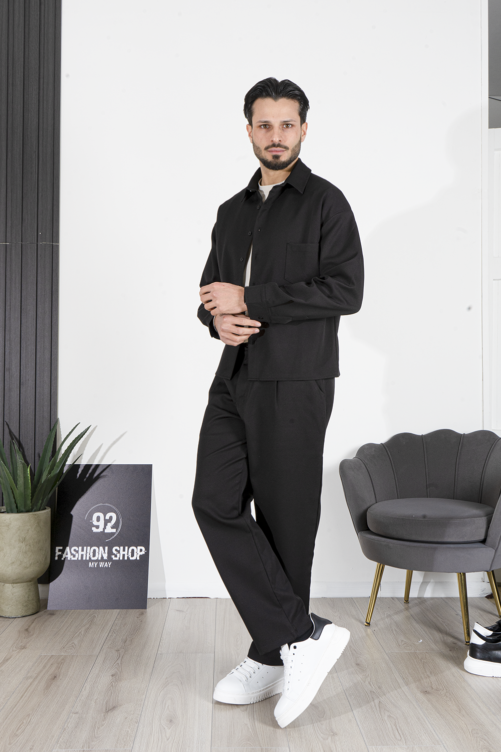 -Aggiungi un tocco di eleganza e comfort al tuo guardaroba con questo completo uomo in tessuto leggero, composto da camicia e pantaloni coordinati. Il design casual-chic del completo è perfetto per ogni occasione, che si tratti di una giornata in città o di un evento semi-formale. La camicia presenta una vestibilità comoda, con colletto classico, chiusura con bottoni e una tasca sul petto, mentre i pantaloni hanno un taglio dritto e una linea pulita che completa il look.