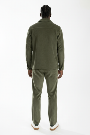 -Dettagli: Pantalone Con Elastico in vita e chiusura con bottone , camicia con taschini al petto e chiusura con bottoni. Fantasia Costine