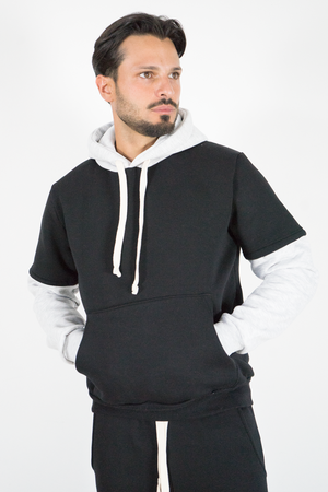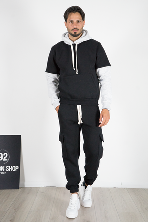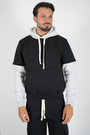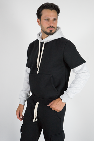 Felpa Uomo Bicolore Felpata Con Cappuccio Art. Fe197