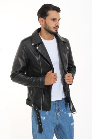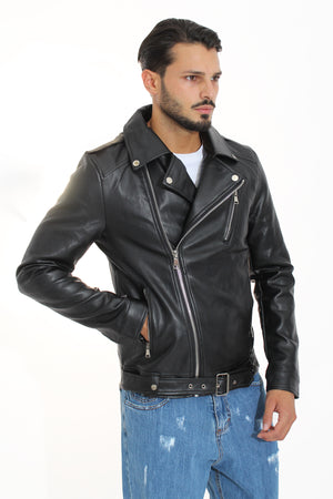 Giubbotto Uomo Chiodo Con Cintura Chiusura Trasversale Art. Gb42