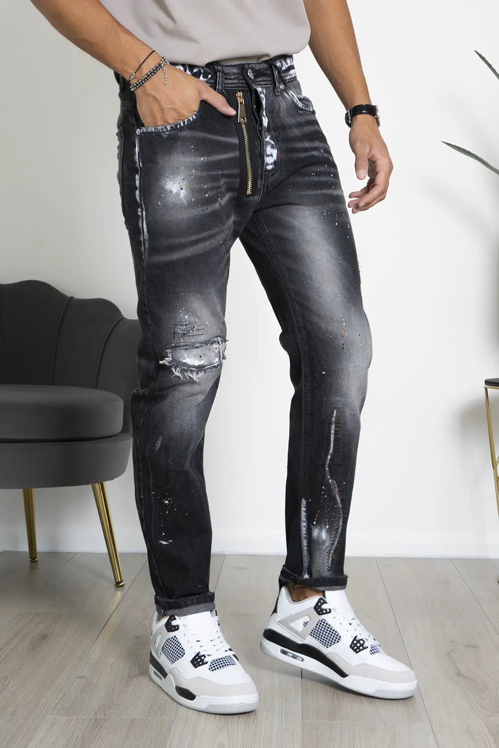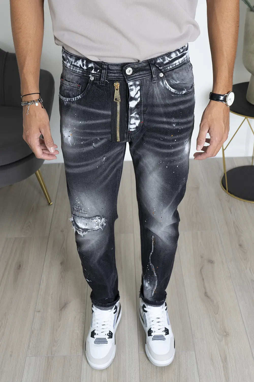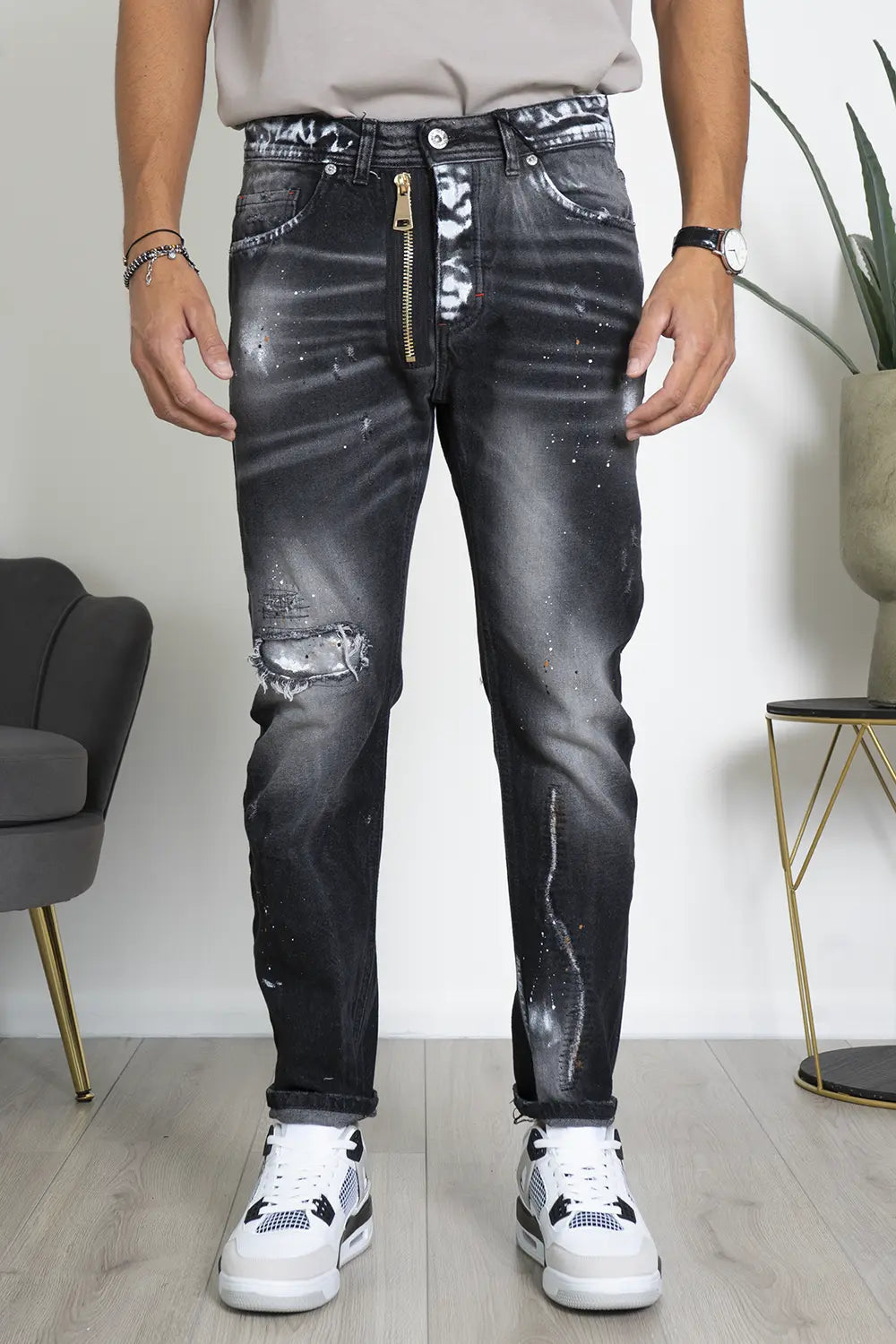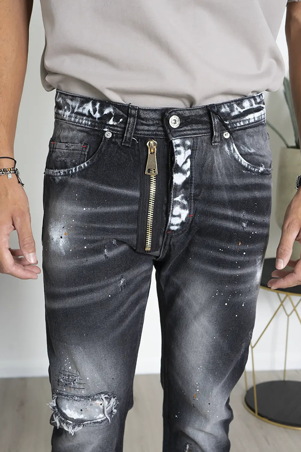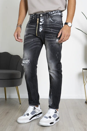 Jeans Con Zip Laterale e abrasioni Art. Js473