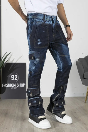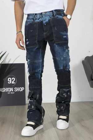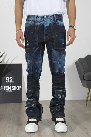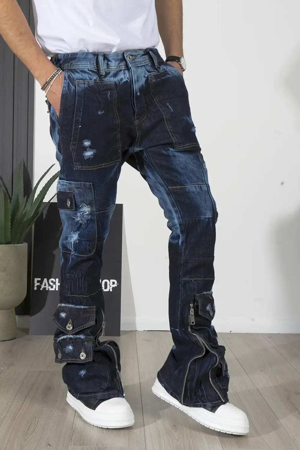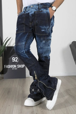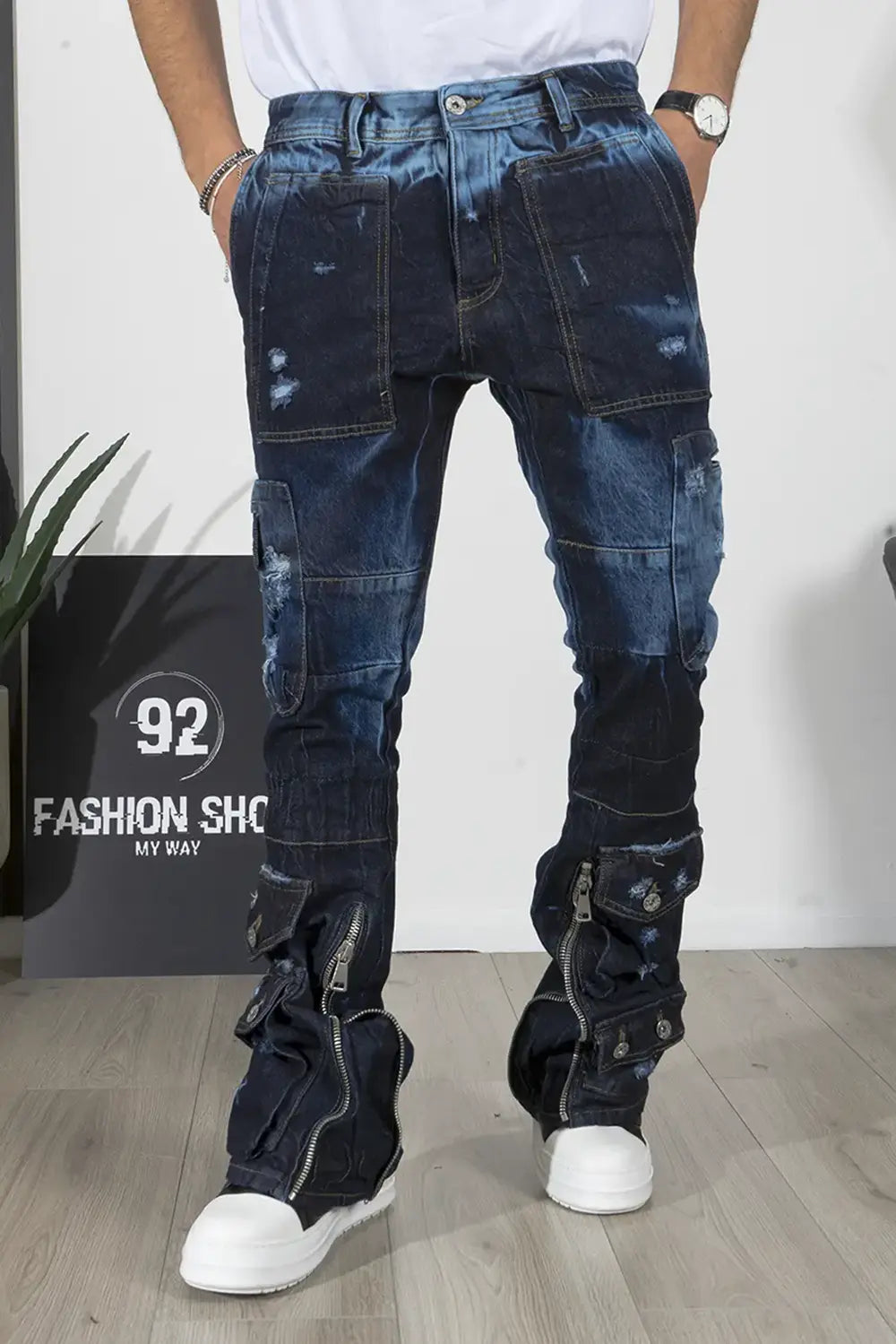 Jeans Flare con Dettagli Cargo e Zip Limited Art. Js531