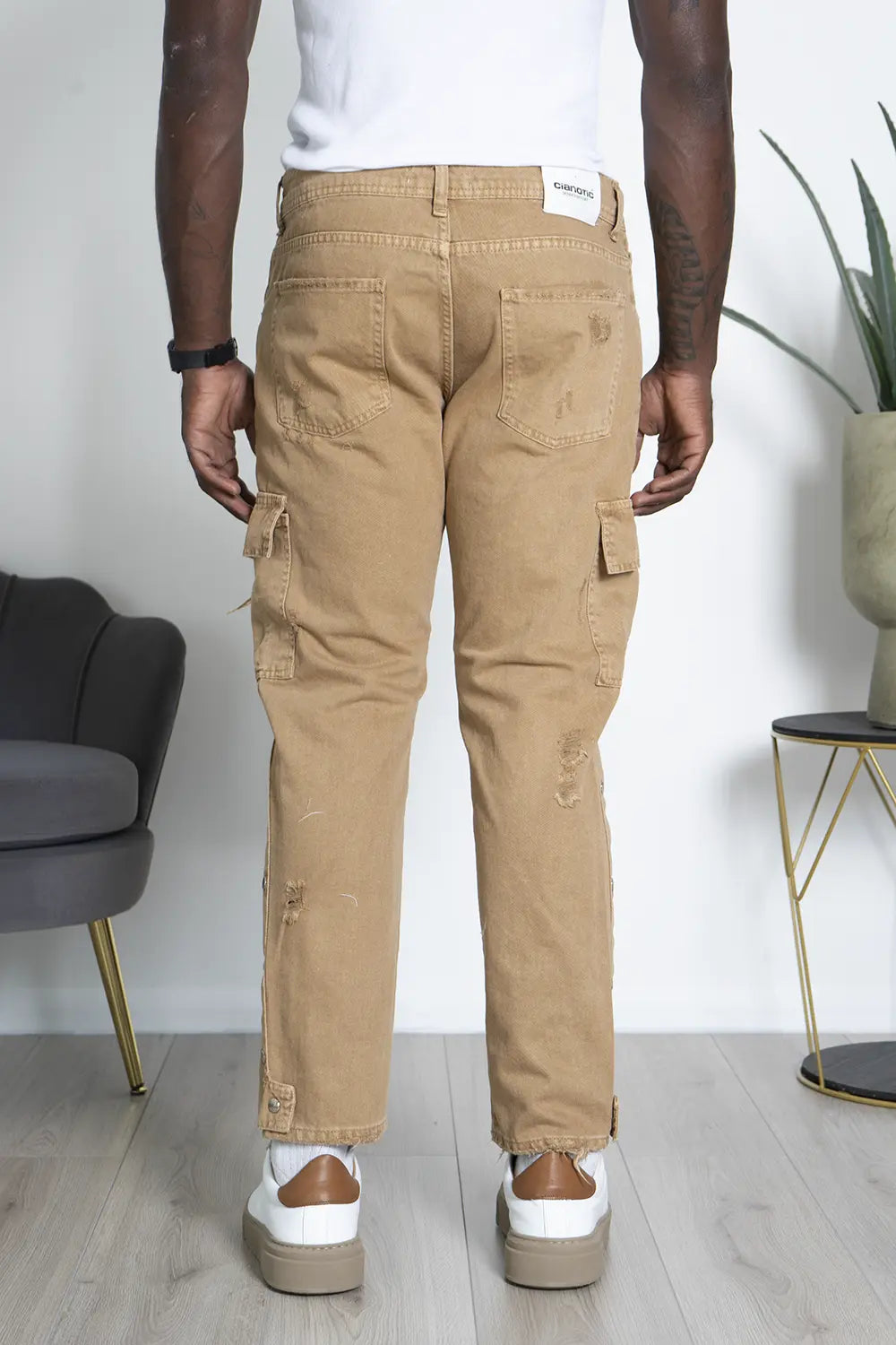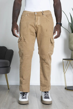 -Dettagli: Jeans cargo Made in Italy dallo stile street, con tasconi laterali, dettagli distressed e bottoni lungo i lati. Un capo comodo e pratico, perfetto per un look casual e urbano. La sua versatilità lo rende adatto per diverse occasioni, abbinando funzionalità e stile.
