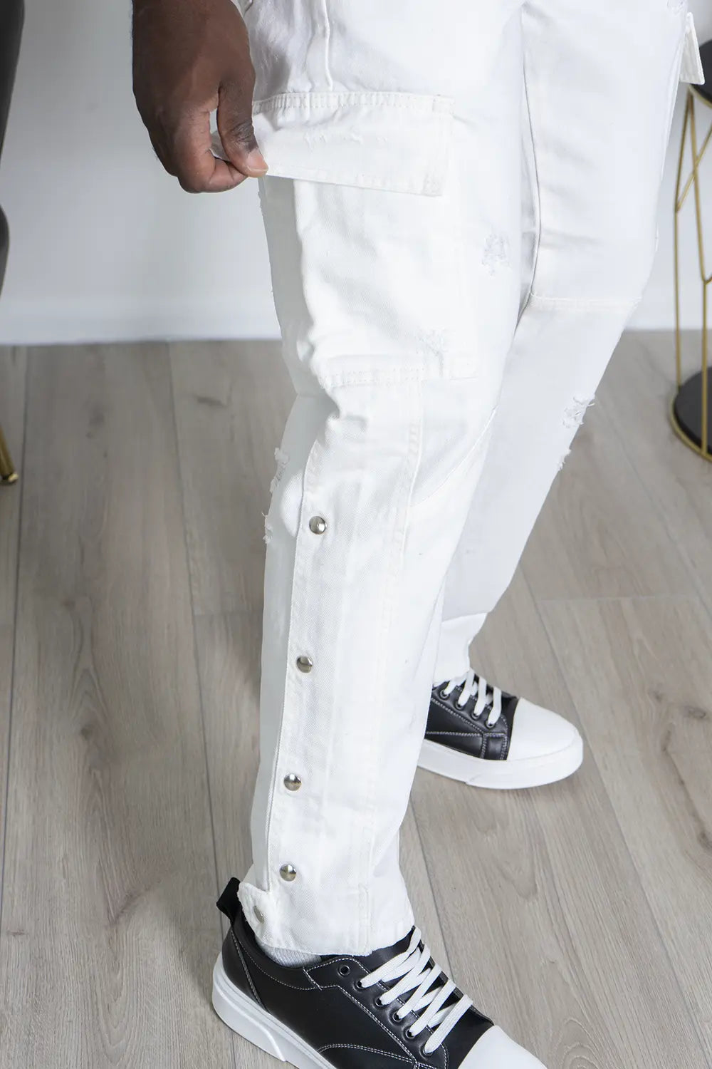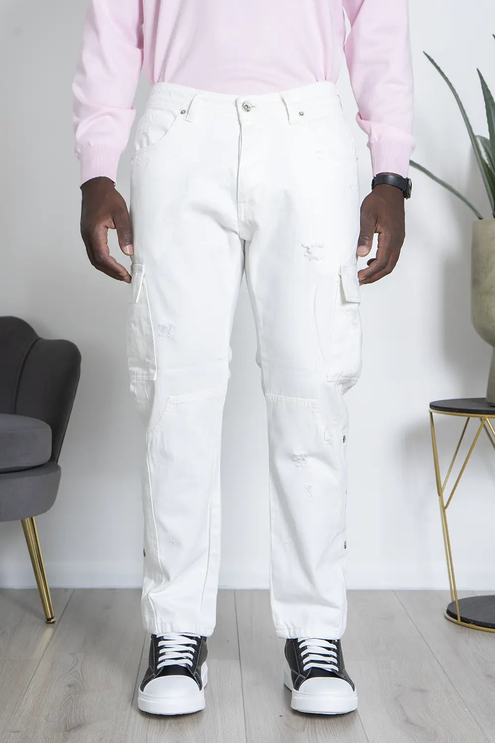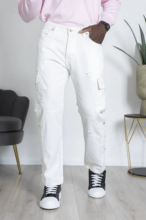 -Dettagli: Jeans cargo Made In Italy dallo stile street, con tasconi laterali, dettagli distressed e bottoni lungo i lati. Un capo comodo e pratico, perfetto per un look casual e urbano. La sua versatilità lo rende adatto per diverse occasioni, abbinando funzionalità e stile.