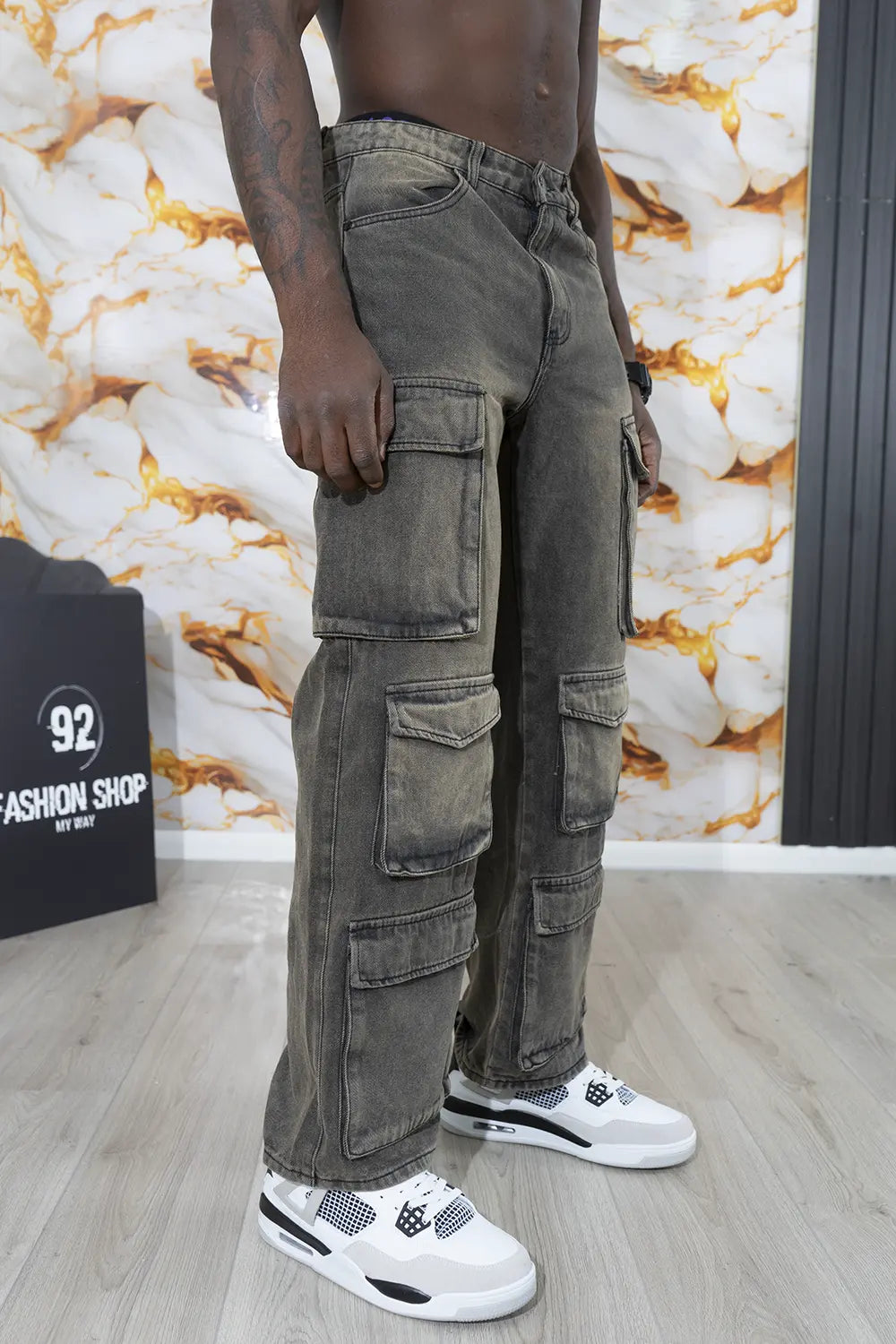-Dettagli: Questo capo rappresenta un paio di jeans cargo da uomo in stile streetwear. Il modello baggy, ampio e comodo, è caratterizzato da numerose tasche cargo applicate su entrambi i lati, ideali per aggiungere un tocco funzionale e moderno al design. Il lavaggio scuro con effetto vintage dona un aspetto vissuto e urbano, perfetto per un look casual e contemporaneo. I dettagli sulle ginocchia e le tasche accentuano l’aspetto robusto e resistente del pantalone. Ideale per chi ama uno stile audace ma pratico, abbinato a scarpe sportive o stivali per un outfit di tendenza.