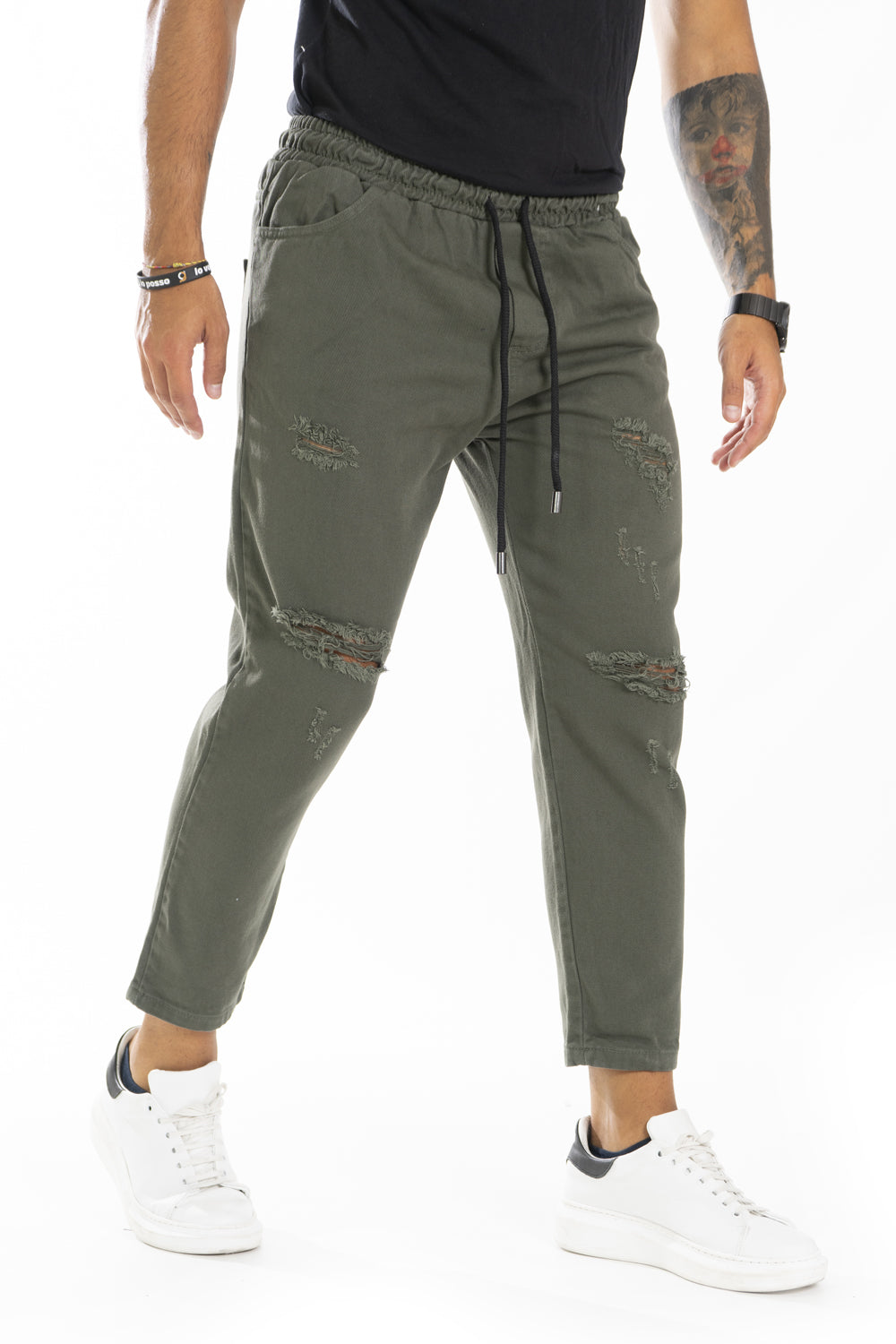 Jeans Uomo Vita Jogger Con Abrasioni Tinta Unita Art. JS376