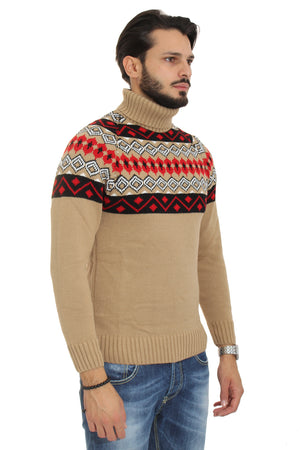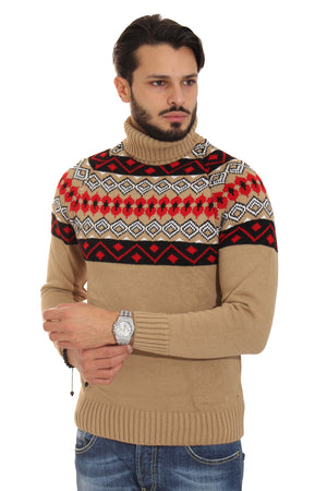 Maglione Uomo Dolcevita Collo Alto Fantasia Ricamata Art. Mg67