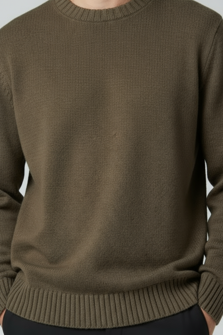 Maglione uomo girocollo in maglia, caratterizzato da una texture morbida e una vestibilità regolare.
