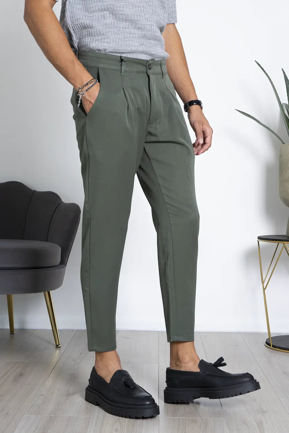 -Questo pantalone è perfetto per chi cerca un capo che unisca uno stile casual e confortevole con un'eleganza più sofisticata. Il bottone decentrato offre un tocco di originalità che lo distingue dai pantaloni convenzionali. Il suo stile versatile lo rende adatto sia per l'uso quotidiano che per occasioni speciali.