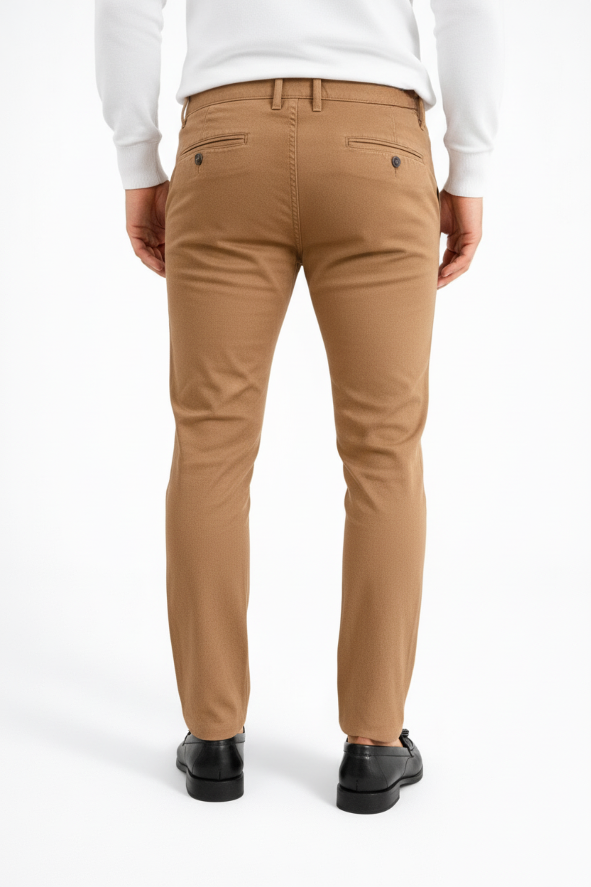 -Pantalone chino uomo in cotone stretch, con fit slim e linea pulita.