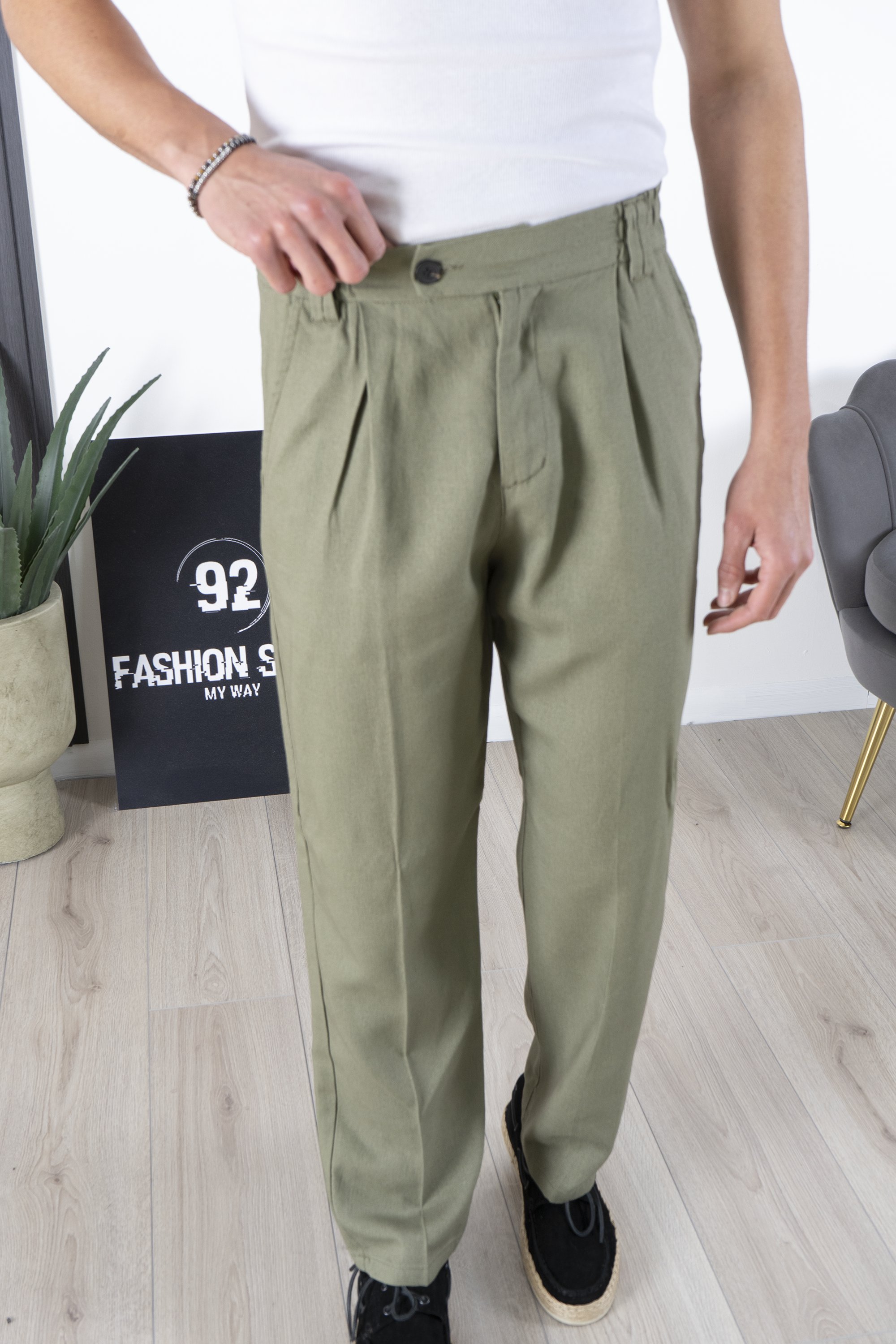 -Esplora il massimo comfort e lo stile senza tempo con il nostro pantalone relaxed fit in lino, prodotto con cura artigianale in Italia. Con un fondo ampio che conferisce un tocco di eleganza, questo pantalone è perfetto per affrontare le giornate estive con freschezza e raffinatezza. Scegli la qualità della produzione italiana e il comfort del lino con il nostro pantalone relaxed fit.