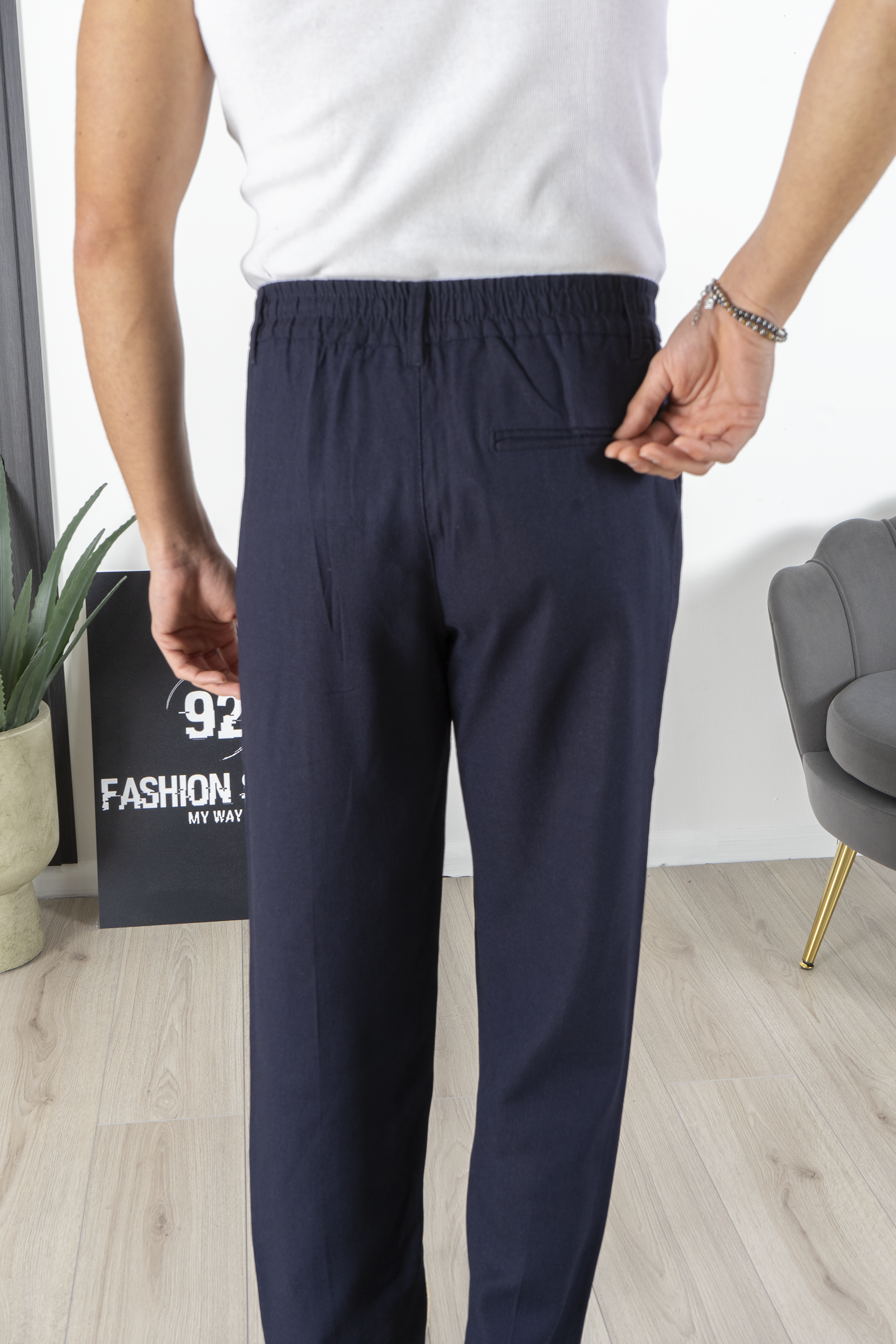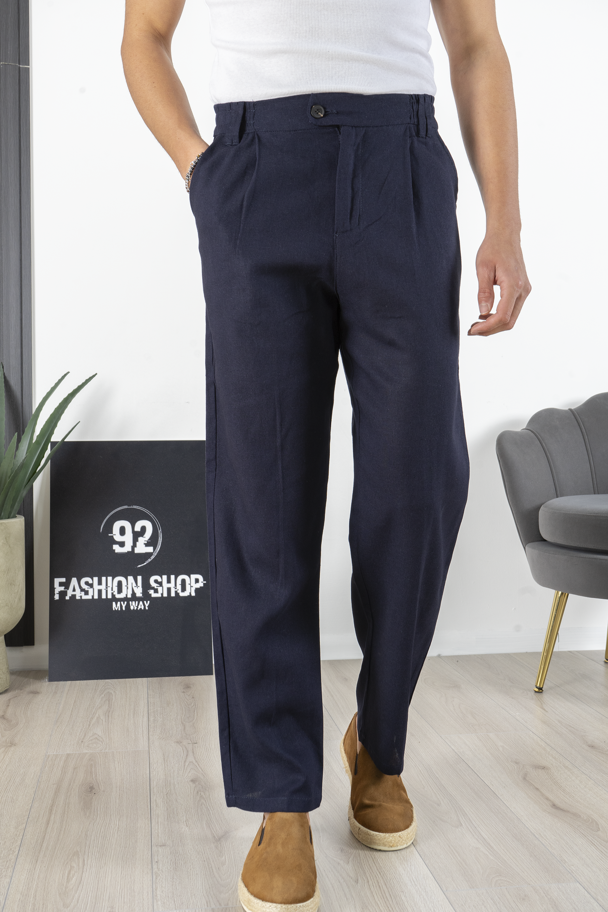 -Esplora il massimo comfort e lo stile senza tempo con il nostro pantalone relaxed fit in lino, prodotto con cura artigianale in Italia. Con un fondo ampio che conferisce un tocco di eleganza, questo pantalone è perfetto per affrontare le giornate estive con freschezza e raffinatezza. Scegli la qualità della produzione italiana e il comfort del lino con il nostro pantalone relaxed fit.