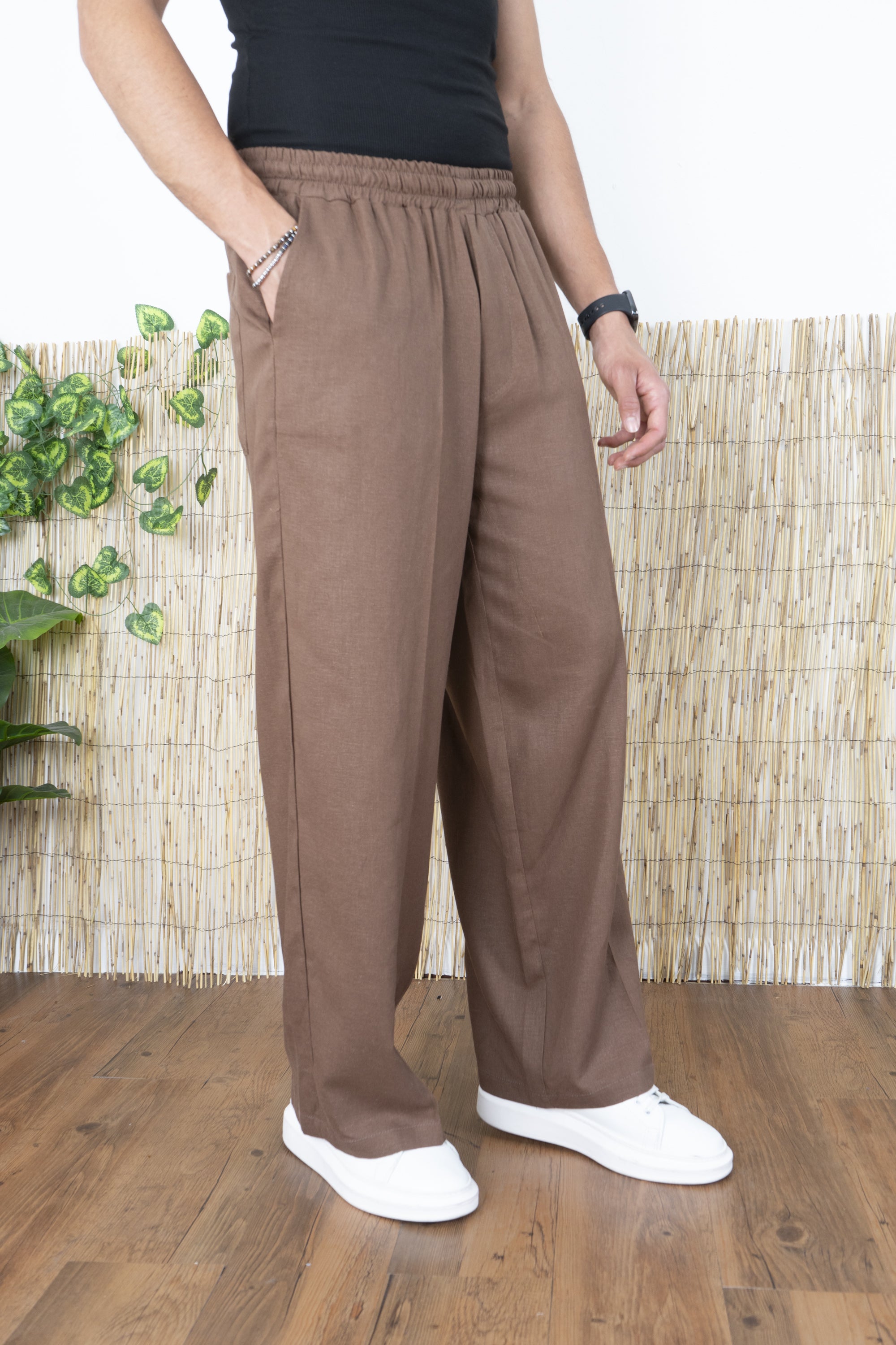 -Dettagli: Il pantalone è caratterizzato da una gamba larga e una vita Jogger. Il design con Vita elastica e il taglio ampio offrono comodità e versatilità, mentre il tessuto in Lino, morbido e fluido si adatta a vari tipi di fisico. Questo pantalone può essere indossato sia in contesti casual che formali, risultando sempre elegante e confortevole.