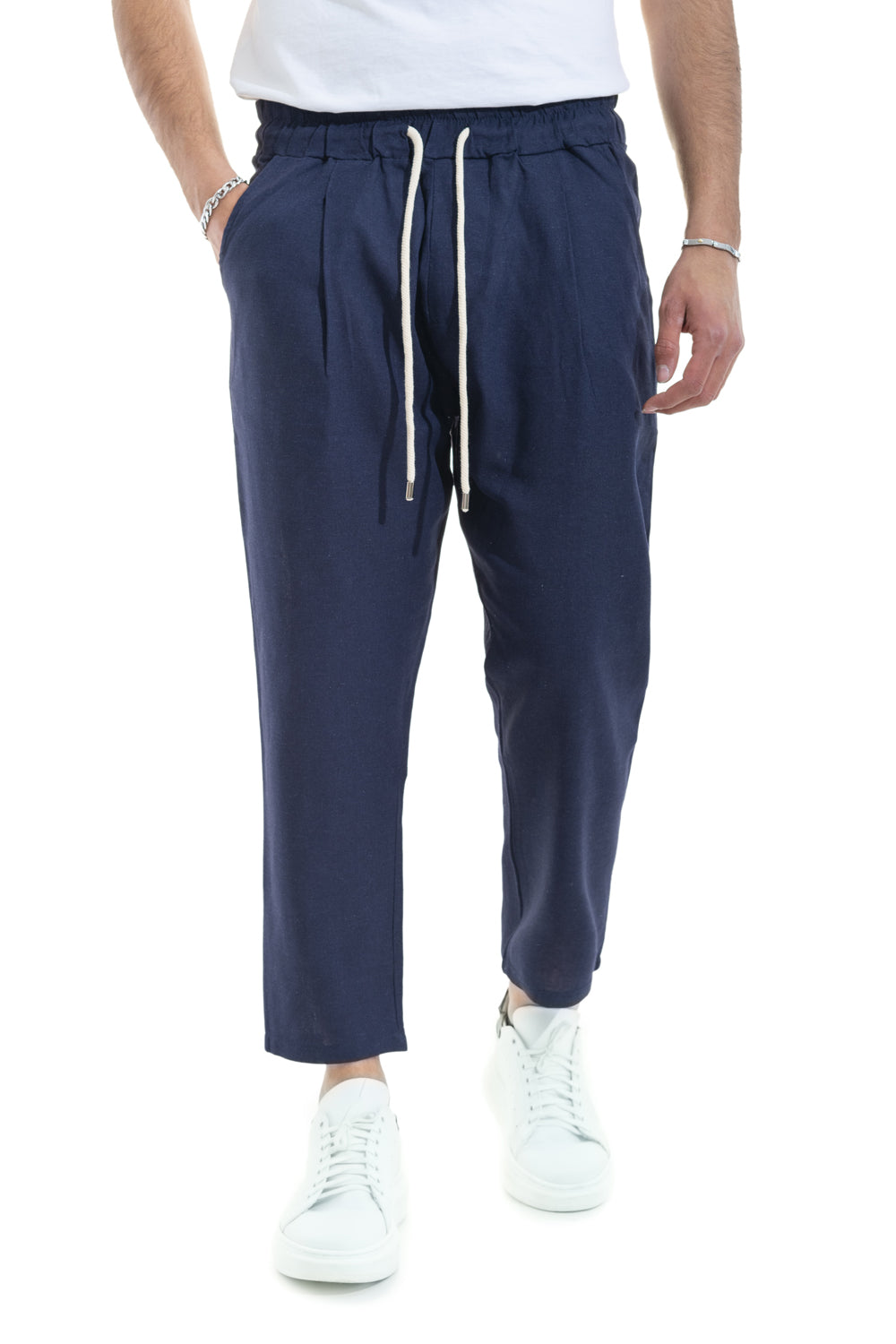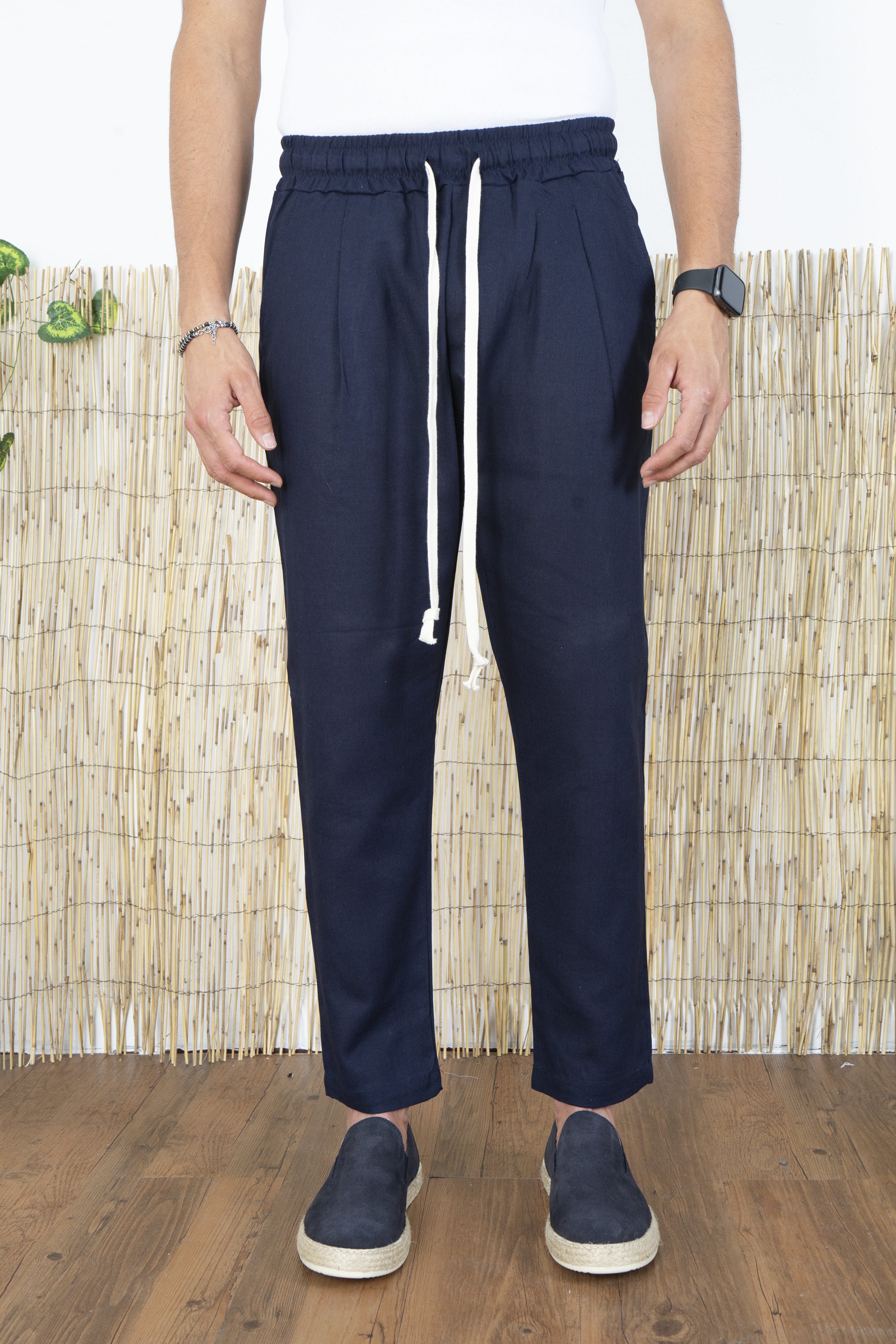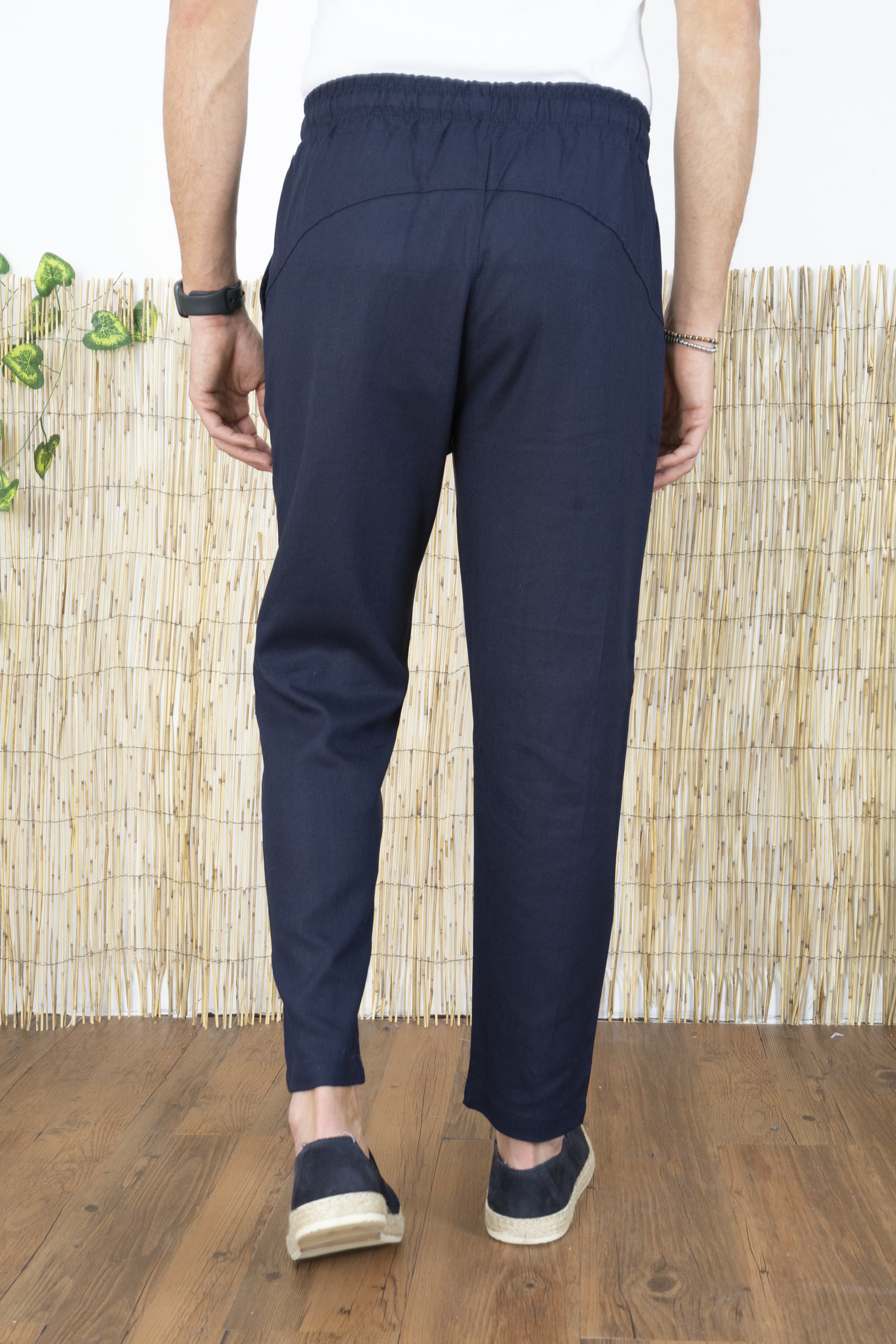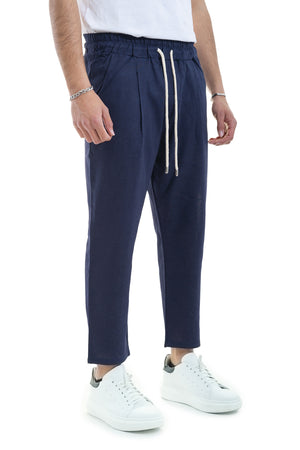 Pantalone Uomo In Lino Tinta Unita Tasca America Art. Pt45