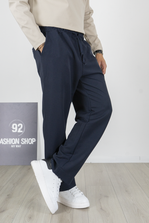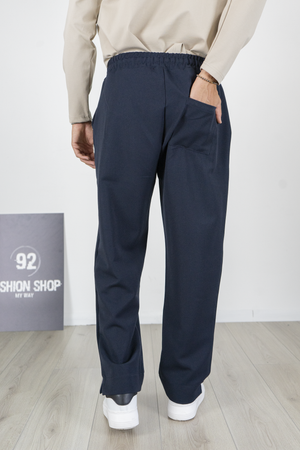 -Pantalone uomo in stile palazzo con fondo largo e vita jogger regolabile tramite coulisse. Realizzato in tessuto fluido e confortevole, unisce eleganza e praticità in un unico capo. Il design moderno con gamba ampia lo rende perfetto per look streetwear sofisticati, ma anche per outfit casual chic. Facile da abbinare con sneakers o mocassini per un risultato versatile e sempre attuale.