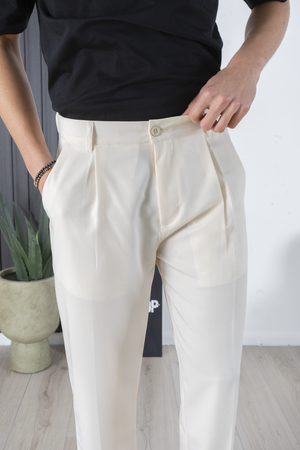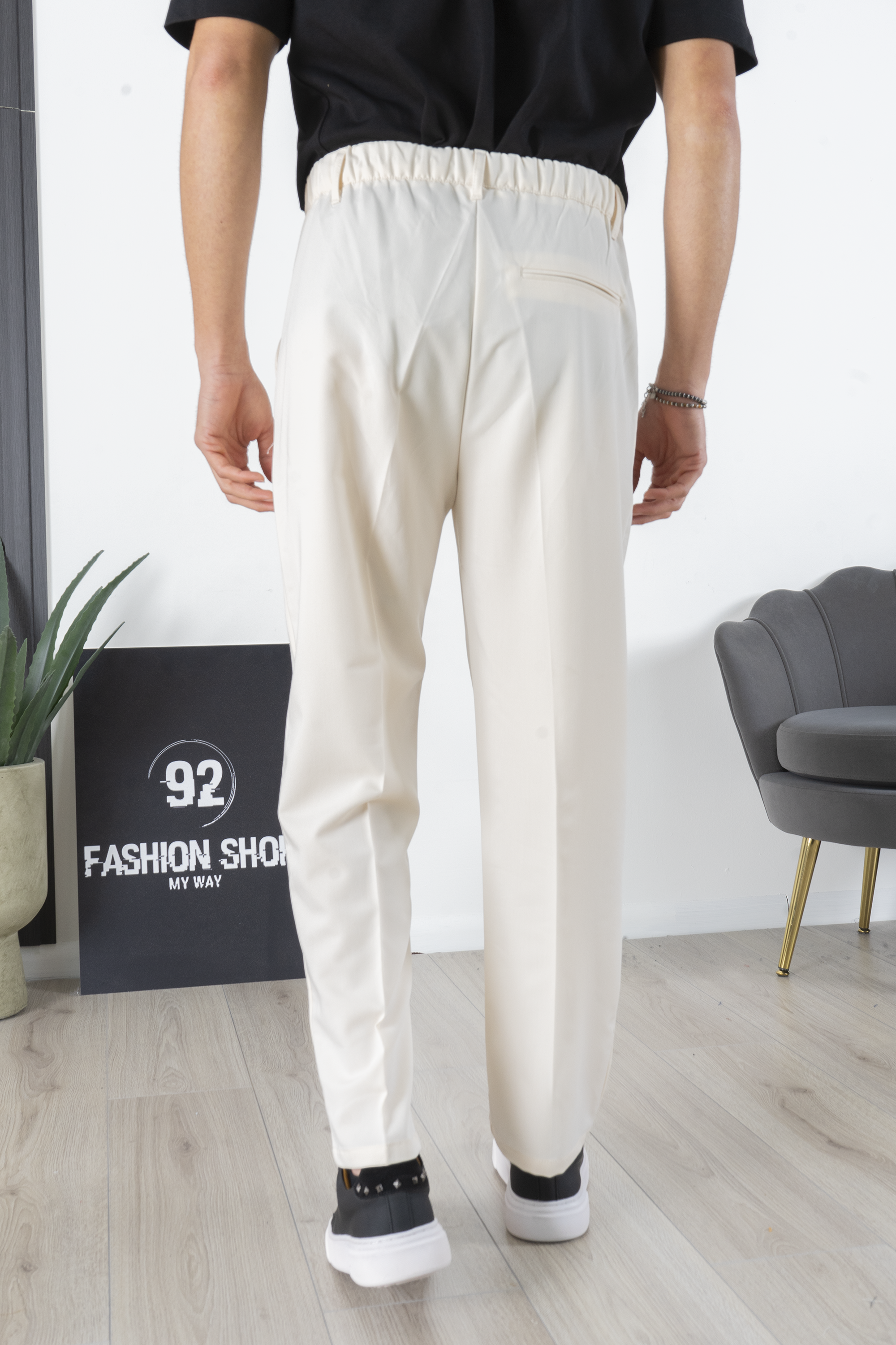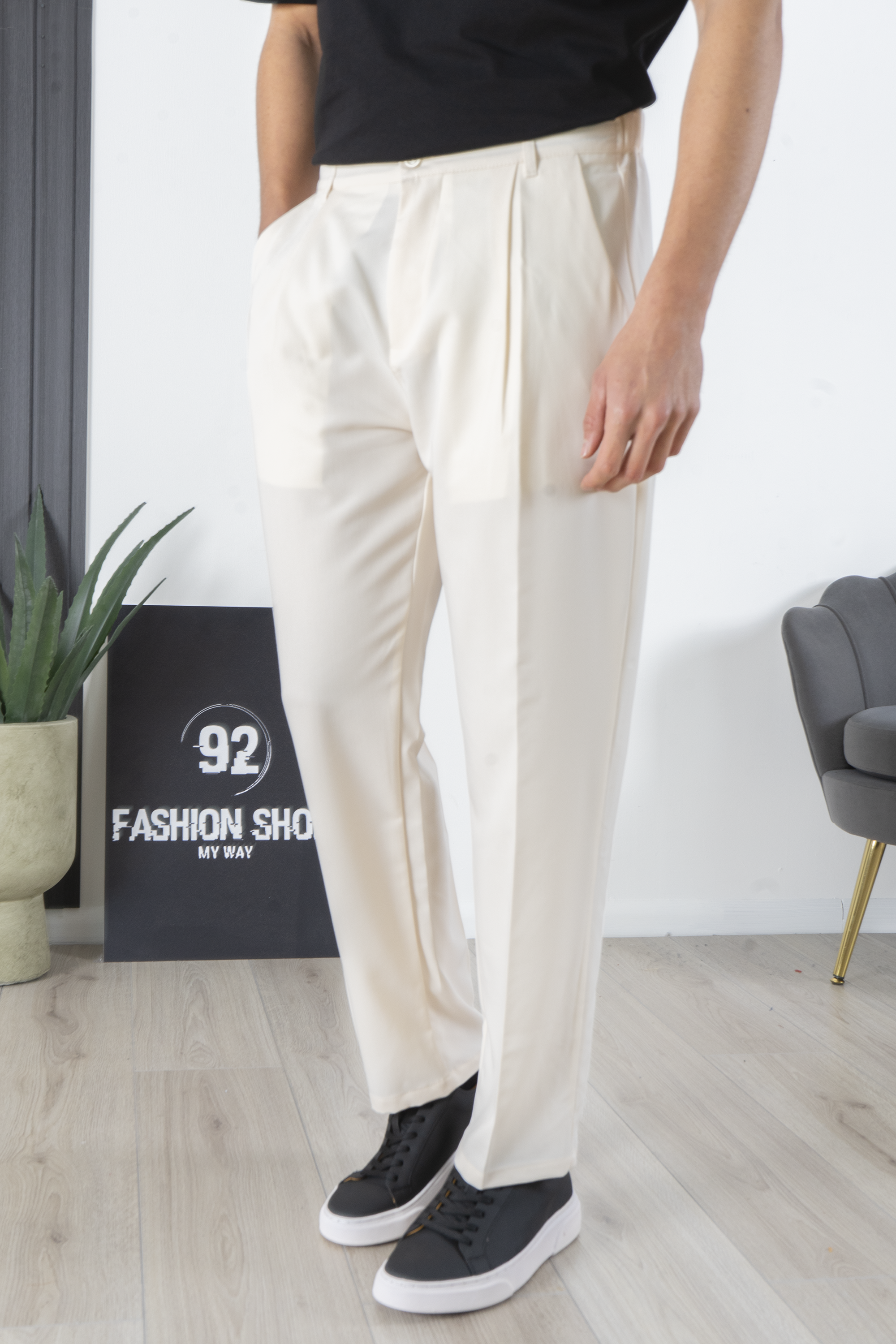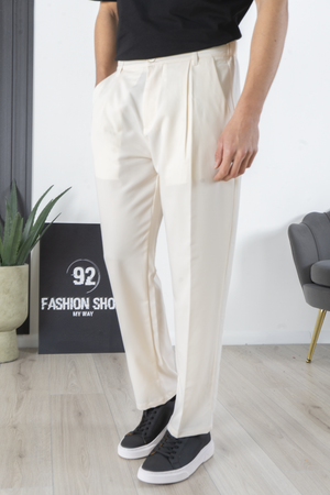 -Questo pantalone è perfetto per chi cerca un capo che unisca uno stile casual e confortevole con un'eleganza più sofisticata. Il bottone decentrato offre un tocco di originalità che lo distingue dai pantaloni convenzionali. Il suo stile versatile lo rende adatto sia per l'uso quotidiano che per occasioni speciali.