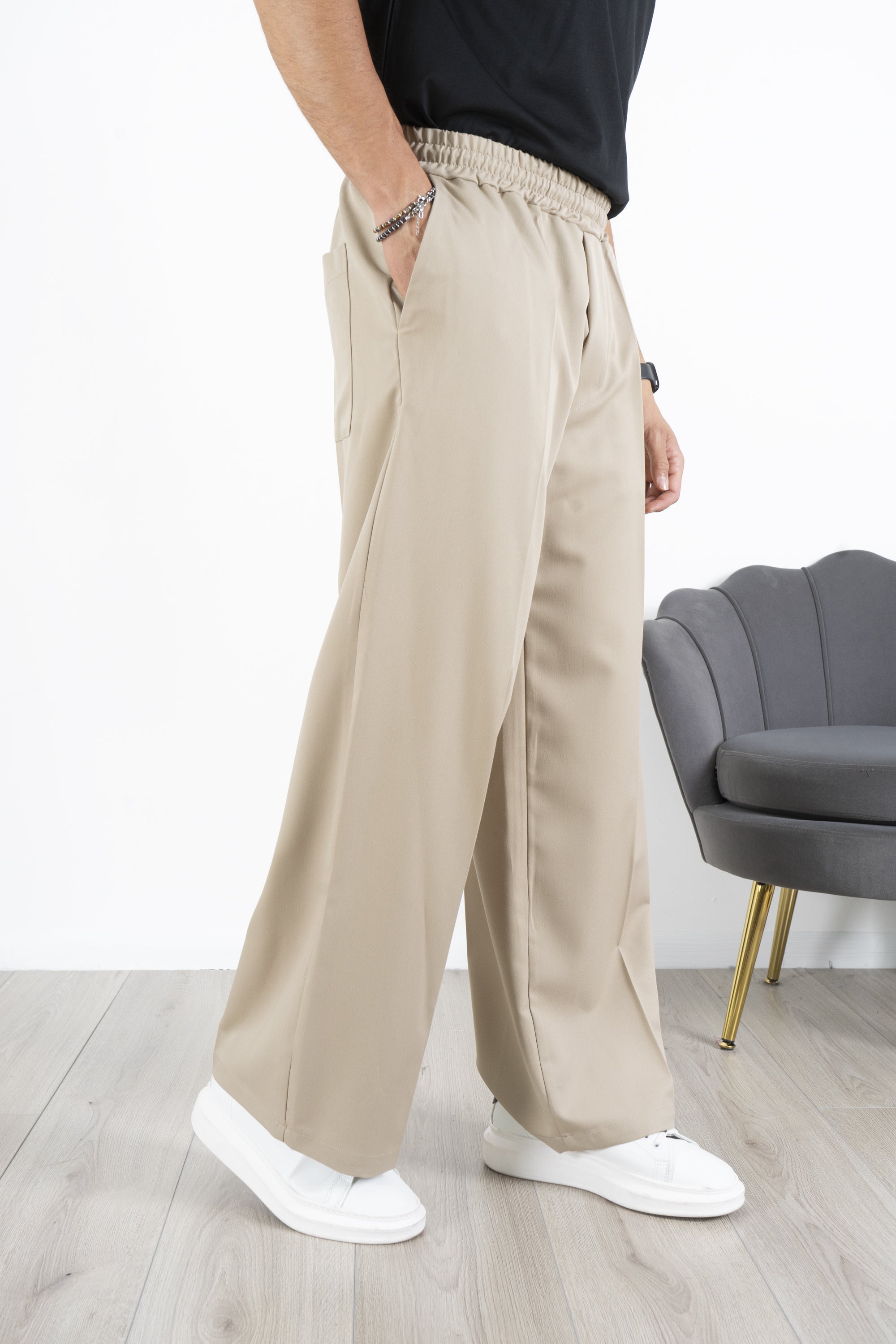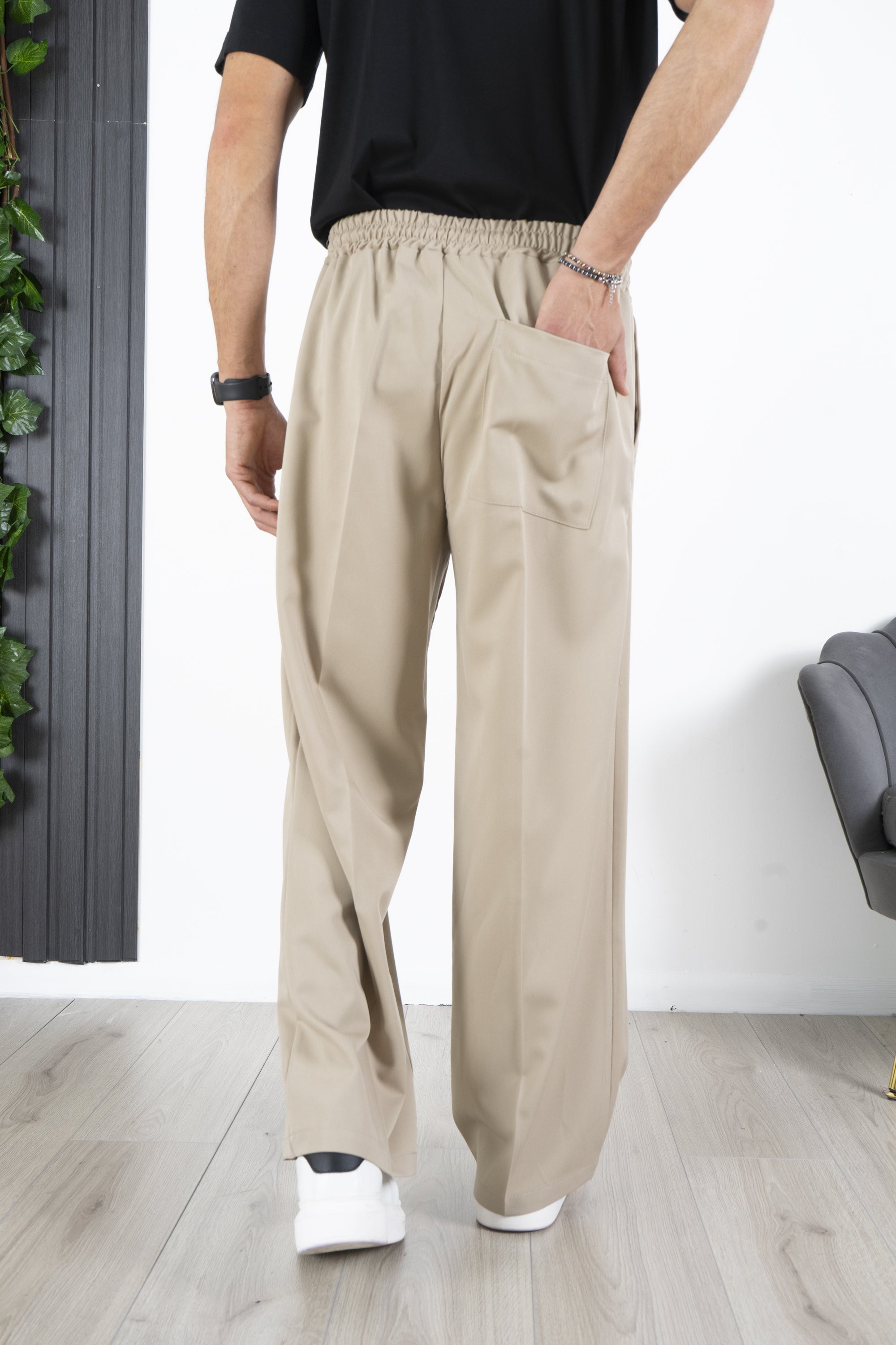 -Dettagli: Il pantalone è caratterizzato da una gamba larga e una vita Jogger. Il design con Vita elastica e il taglio ampio offrono comodità e versatilità, mentre il tessuto morbido e fluido si adatta a vari tipi di fisico. Questo pantalone può essere indossato sia in contesti casual che formali, risultando sempre elegante e confortevole.