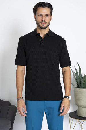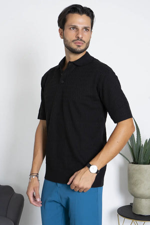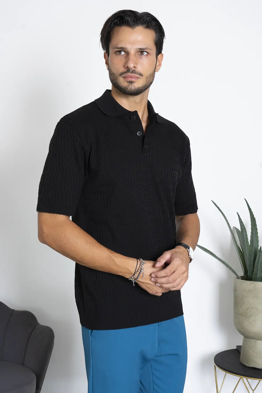 -Questa polo da uomo a maniche corte in maglia rappresenta l'essenza di uno stile casual ma raffinato. Realizzata in un misto di policotone di alta qualità, offre un comfort duraturo e una piacevole sensazione al tatto. Perfetta sia per occasioni formali che informali, questa polo è pensata per chi cerca eleganza senza rinunciare alla comodità.