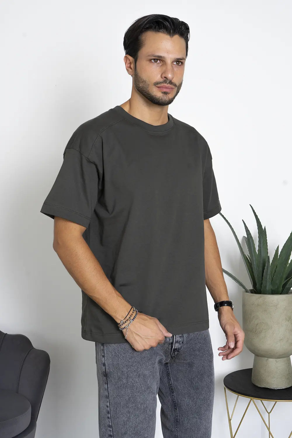 -Questa T-shirt da uomo Cropped in cotone da 220 gr, è un capo di abbigliamento essenziale per chi cerca qualità e stile in un'unica soluzione. Prodotta interamente in Italia, questa maglietta si distingue per il suo tessuto più spesso rispetto alle tradizionali T-shirt, offrendo maggiore resistenza e durabilità, senza compromettere il comfort.
