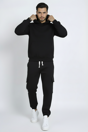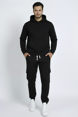 -Dettagli: Tuta completa felpata composta da felpa hoodie con cappuccio senza laccio e pantalone cargo dallo stile moderno. Il tessuto felpato all'interno offre una piacevole sensazione di calore e morbidezza, ideale per affrontare le giornate più fresche con stile. La vestibilità loose fit della felpa, combinata con la praticità delle tasche del pantalone cargo, rende questo set perfetto per un look casual e contemporaneo. Un vero must-have grazie alla sua qualità premium, pensato per garantire comfort e durata.