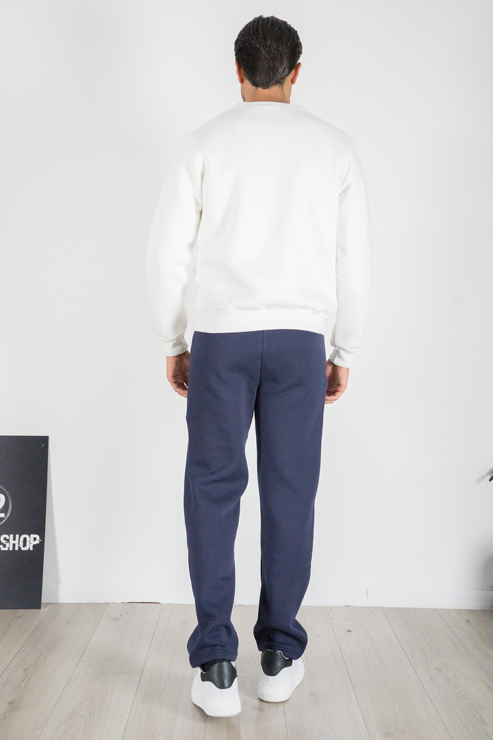 -Completo tuta uomo in cotone, composto da felpa girocollo e pantalone jogger con coulisse in contrasto bianco.