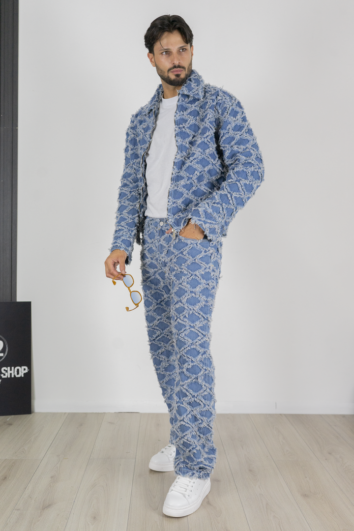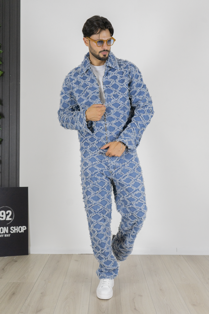 -Ajoutez une touche d'originalité et de confort à votre garde-robe avec ce costume en jean pour homme. La veste présente un design moderne avec des détails à franges et une coupe décontractée, tandis que la fermeture éclair sur le devant la rend pratique et élégante. Le tissu denim offre une durabilité et un look urbain, parfait pour ceux qui recherchent un style décontracté mais frappant.