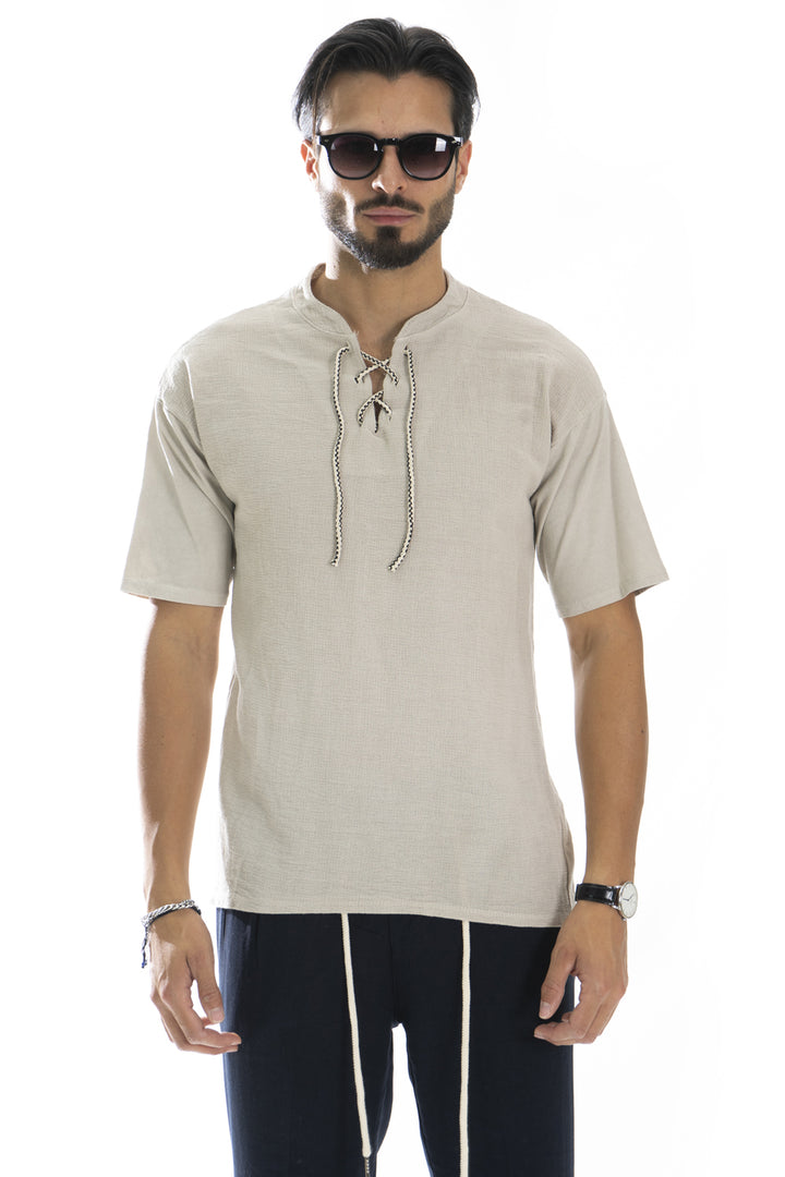 - Découvrez le confort et le style italiens avec notre chemise en coton frais, dotée d'un col en V et d'un cordon de serrage. Soigneusement fabriquée à la main en Italie, cette chemise offre un mélange parfait d'élégance et de praticité. Choisissez la qualité et l'originalité du Made in Italy pour ajouter une touche de classe à votre garde-robe.
