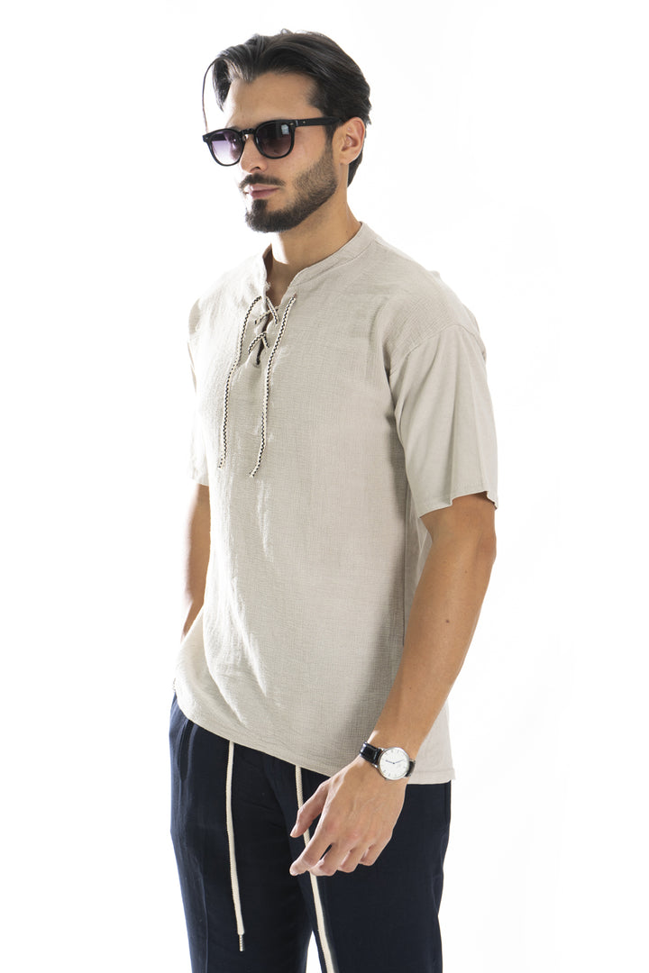 T-shirt en coton avec col en V et cordon de serrage Art. Ts227