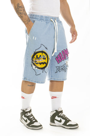 Bermuda jeans Uomo Vita Jogger con stampa Smile Art. Bm91