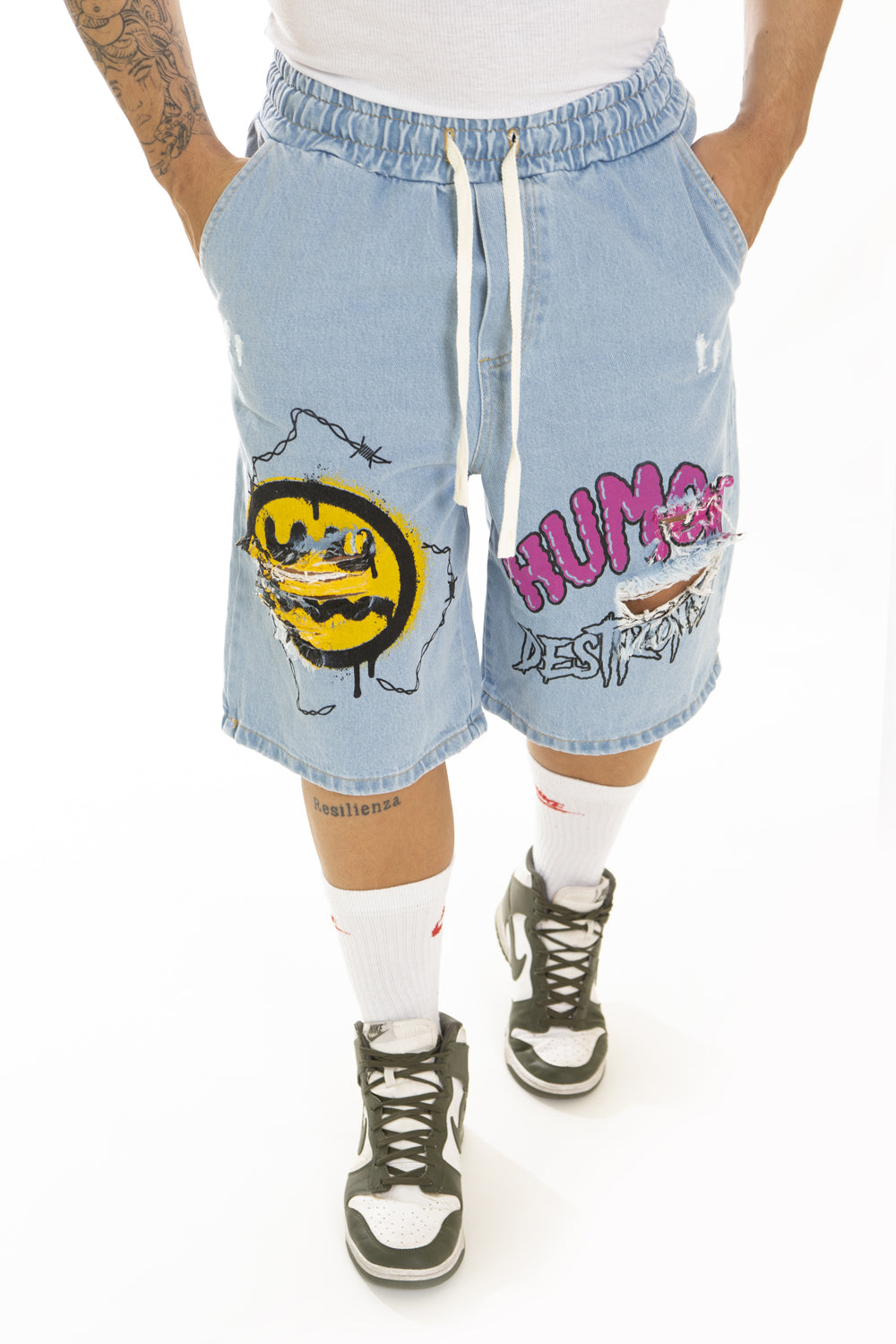 Casa Bermuda jeans Uomo Vita Jogger con stampa Smile Art. Bm91