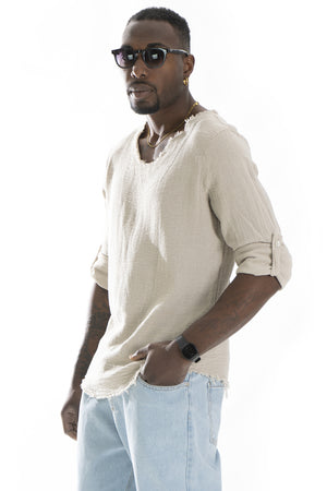 - Rinfresca il tuo look estivo con la nostra casacca in cotone, delicatamente sfrangiata per un tocco di originalità. Perfetta per abbinamenti casual e rilassati, questa casacca è l'emblema dello stile estivo senza sforzo. Scegli comfort e freschezza con la nostra casacca sfrangiata, il capo essenziale per uno stile estivo impeccabile.