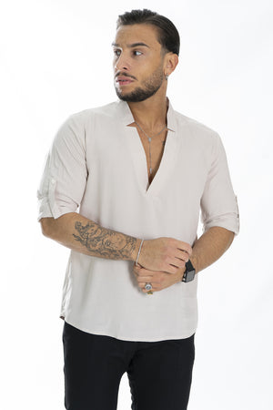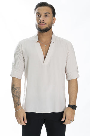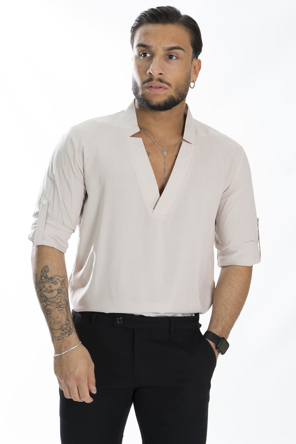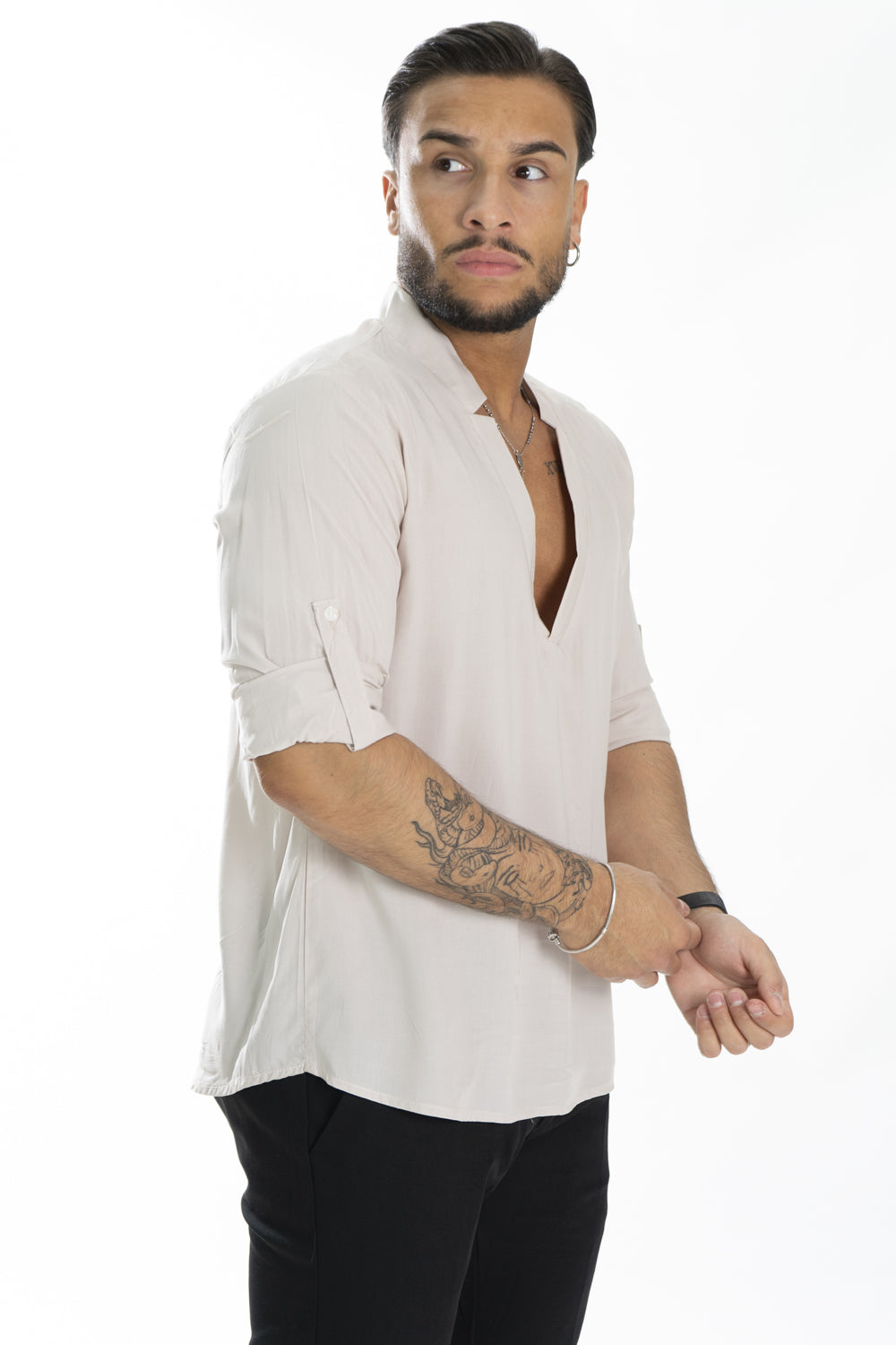 Camicia Casacca Uomo Viscosa Scollo V Tinta Unita Art. Cm163