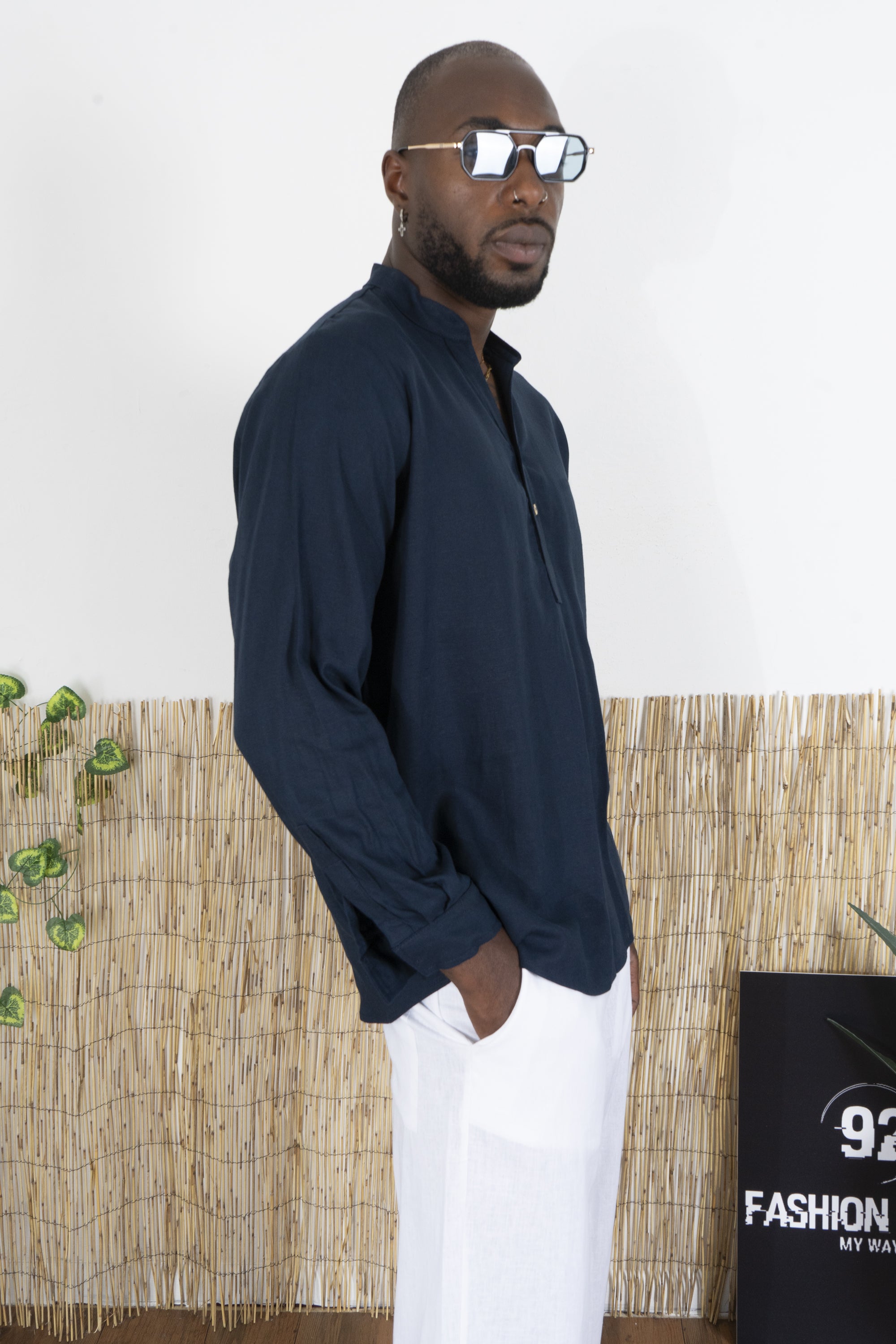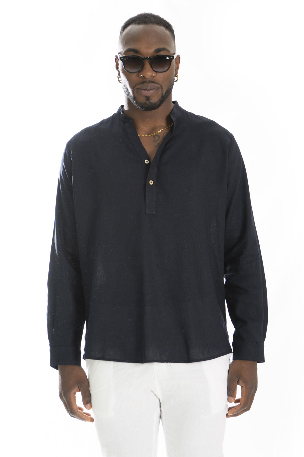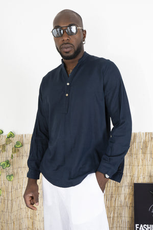 Camicia Uomo Casacca In Lino Con Bottoni A metà busto Art. Cm195